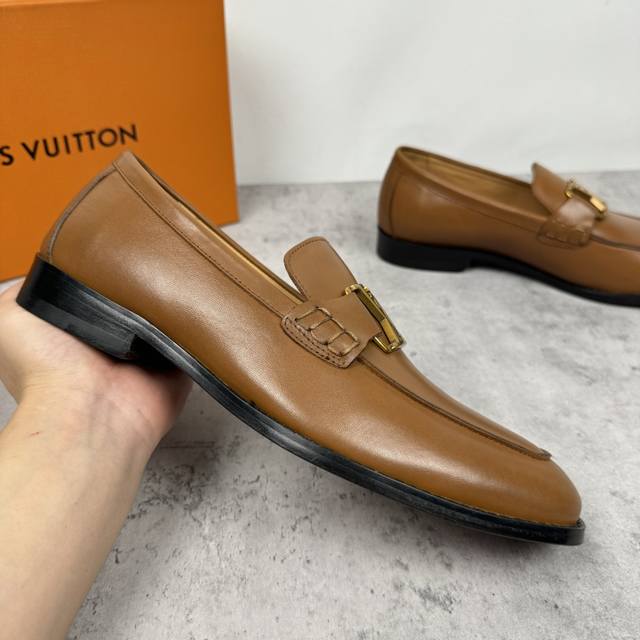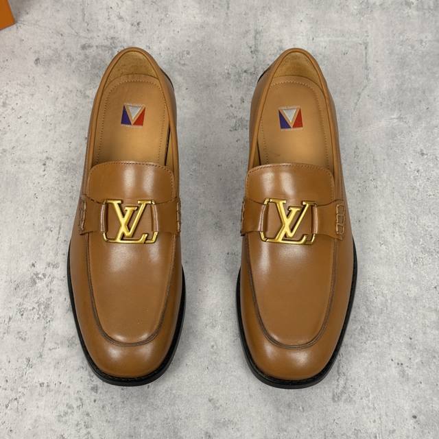 路易威登 Lv Major系列乐福鞋男款出货! 进口胎牛皮面,真皮缝合拼接焗边工艺, 高端材料胎牛皮材质,皮料细腻高端 看实物效果 套脚款设计非常好穿脱 搭配真