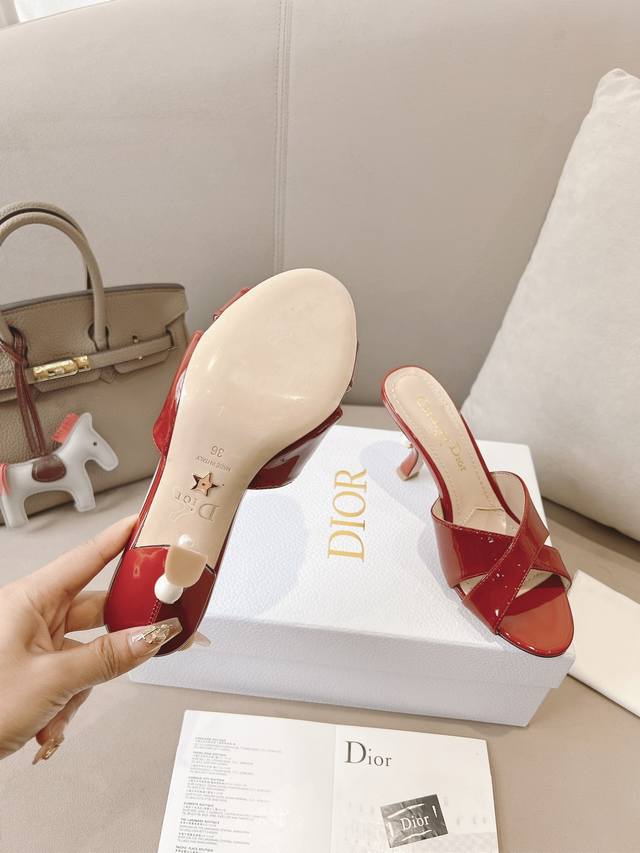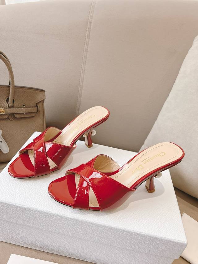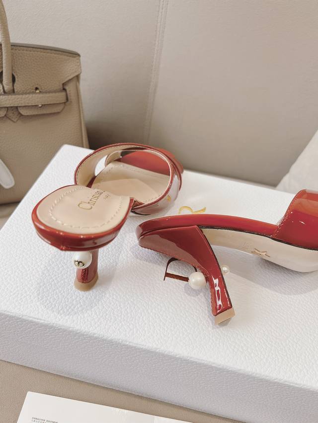 迪奥 Dior 早春 珍珠跟交叉拖鞋 高级感十足!国内外博主刷爆的一款 复古又时髦 上脚美炸了!鞋面:进口牛漆 内里:进口羊皮 大底:意大利真皮底 跟高:8公分 码数35 39 34 40 41 42定做