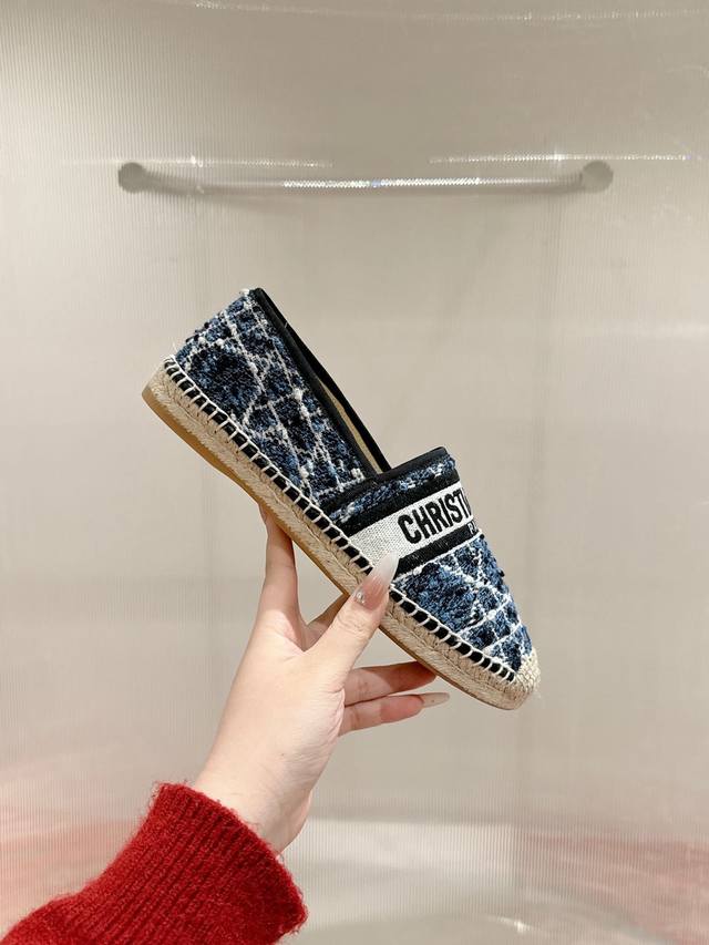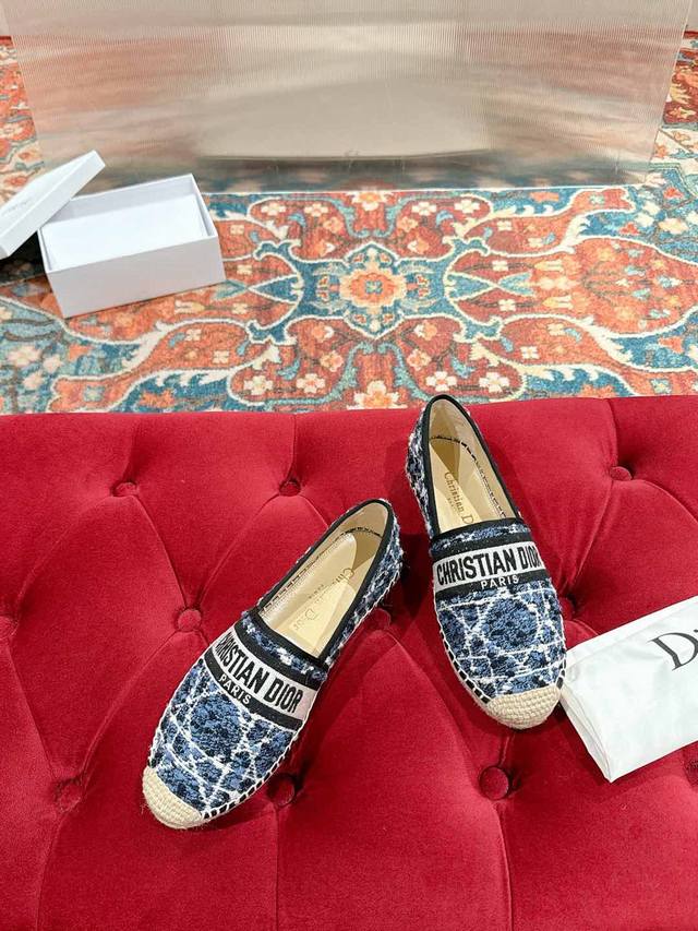 迪奥Dior早春新款爆款渔夫鞋 简约大气时髦,耐看不过时,是时尚圈永不退潮的经典所在,复古的渔夫鞋。 原版手工编织面,电绣工艺!特定布面 生胶大底。 码数:35