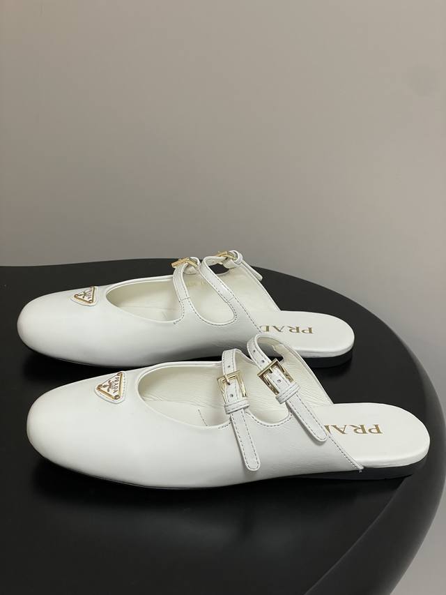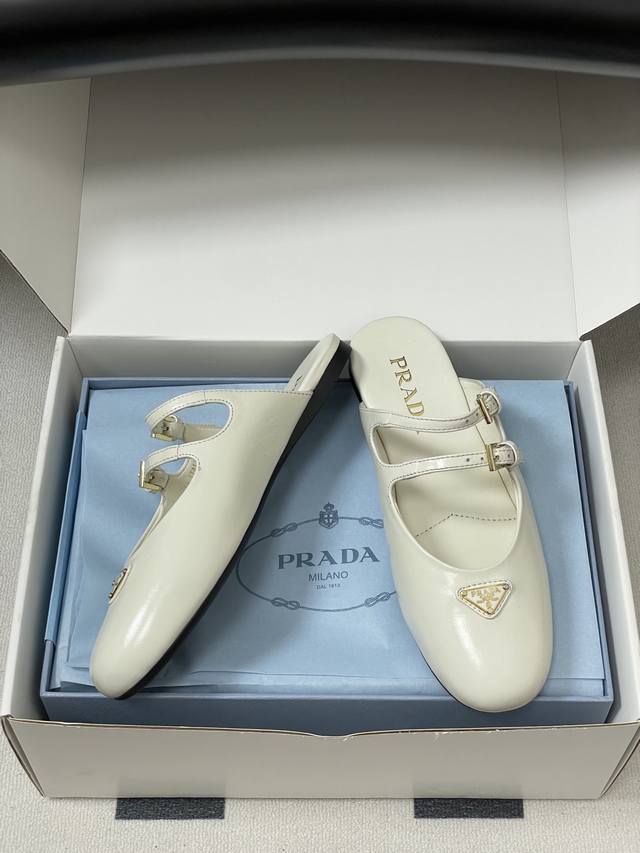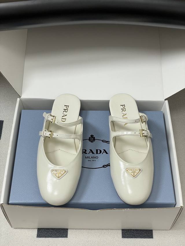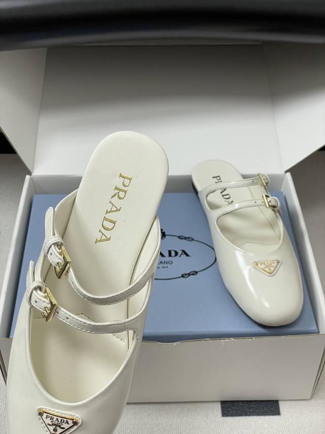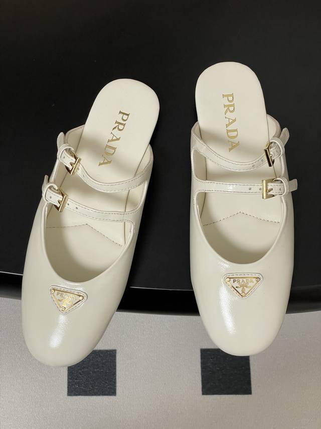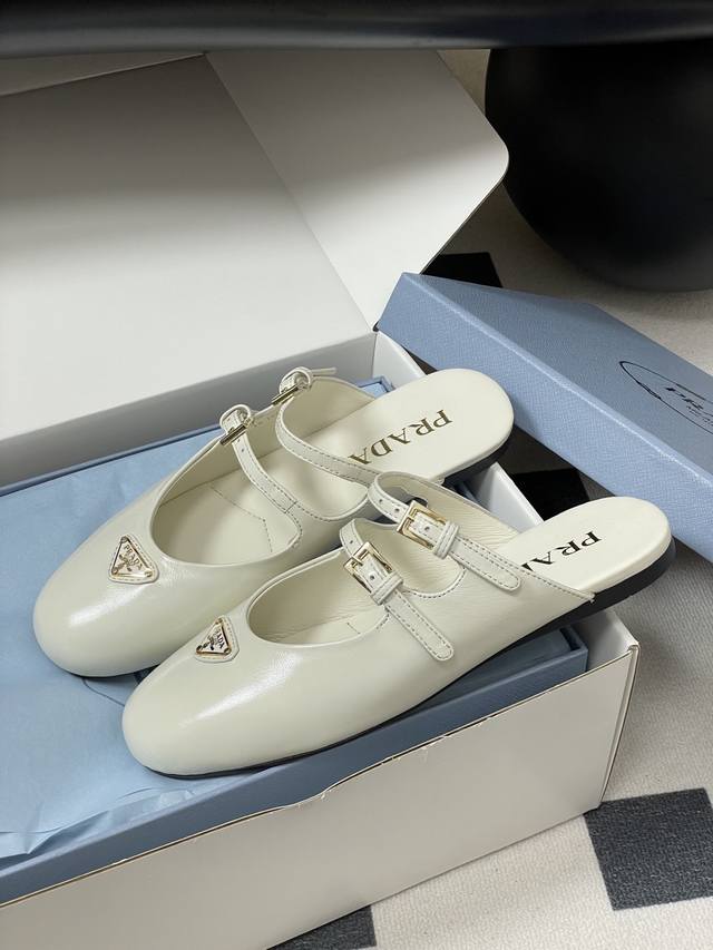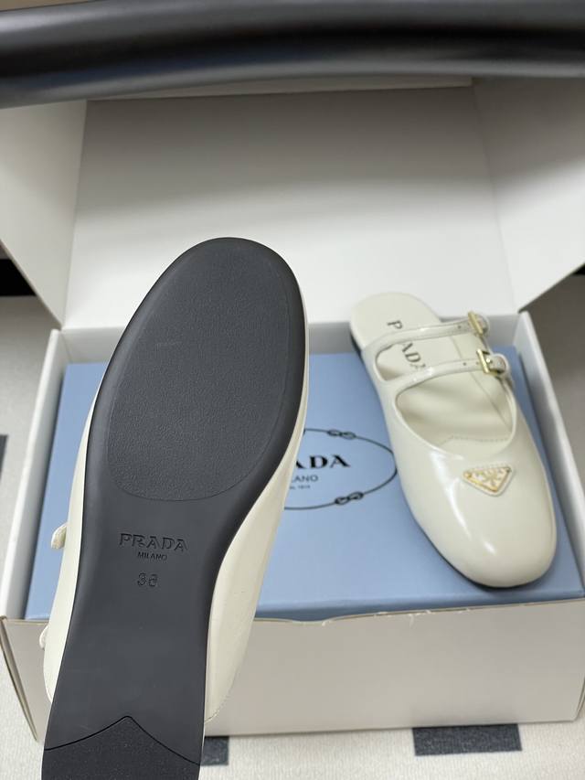 25Ss早春新款Prada普拉达皱漆皮芭蕾平底鞋玛丽珍芭蕾舞平底半拖鞋包头豹纹穆勒鞋