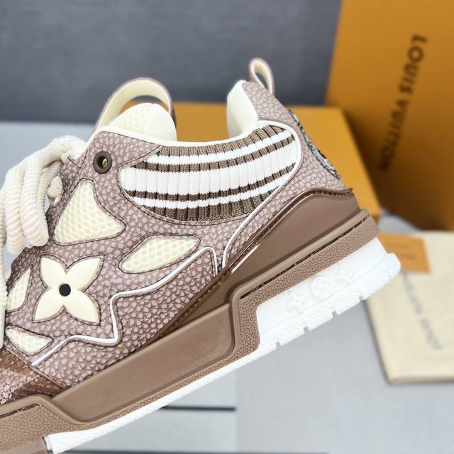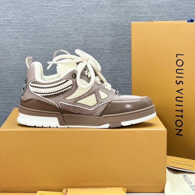 鞋面由意大利进口小牛皮拼接,侧边饰有品牌Logo标志及签名,进口了透气网布内里,脚感超舒适。原厂特供原版双色Tpu吸模大底。套包工艺 固特异缝合锁边