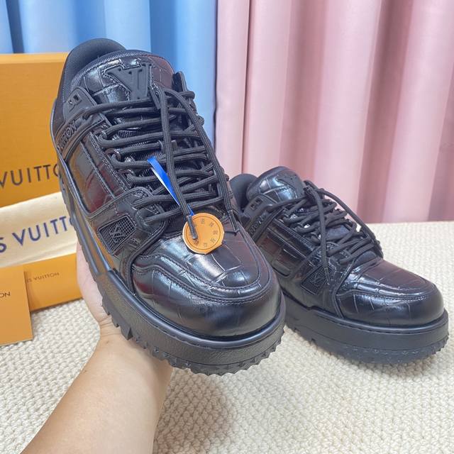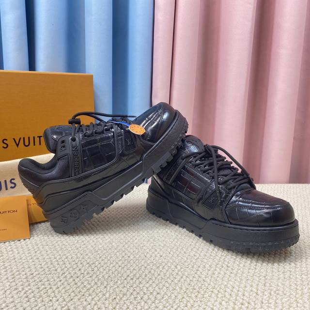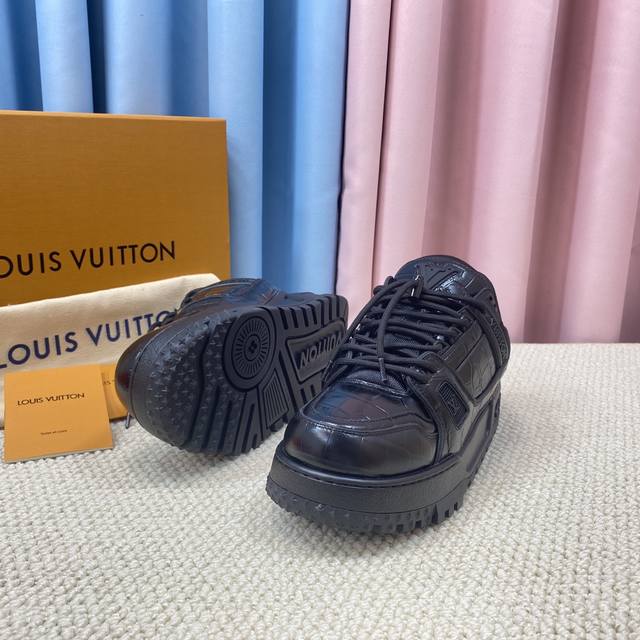 面包鞋 顶级级版本 Lv-路易-威登 Pk市场一切版本 情侣款 走秀新款 篮球板鞋 代购品质 原版1:1开发复刻!!上脚非常舒适 做工精细 鞋面由意大利进口小牛皮拼接,侧边饰有品牌Logo标志及签名,进口了透气网布内里,脚感超舒适。原厂特供原版双色Tpu吸模大底。套包工艺 固特异缝合锁边
