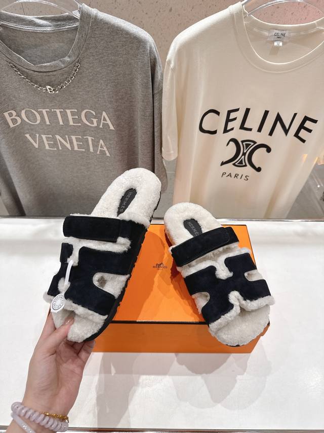 Hermes 爱马仕H家又一款让你完全Hold不住钱包的大爆款,经典款情侣码二舅毛毛拖