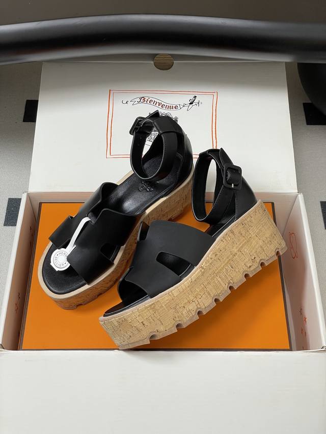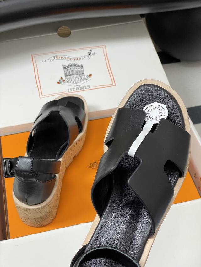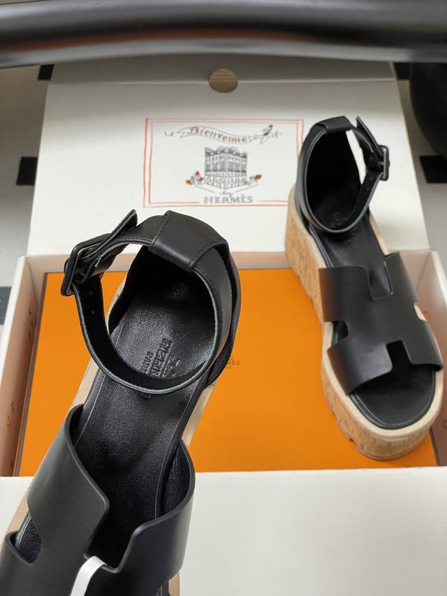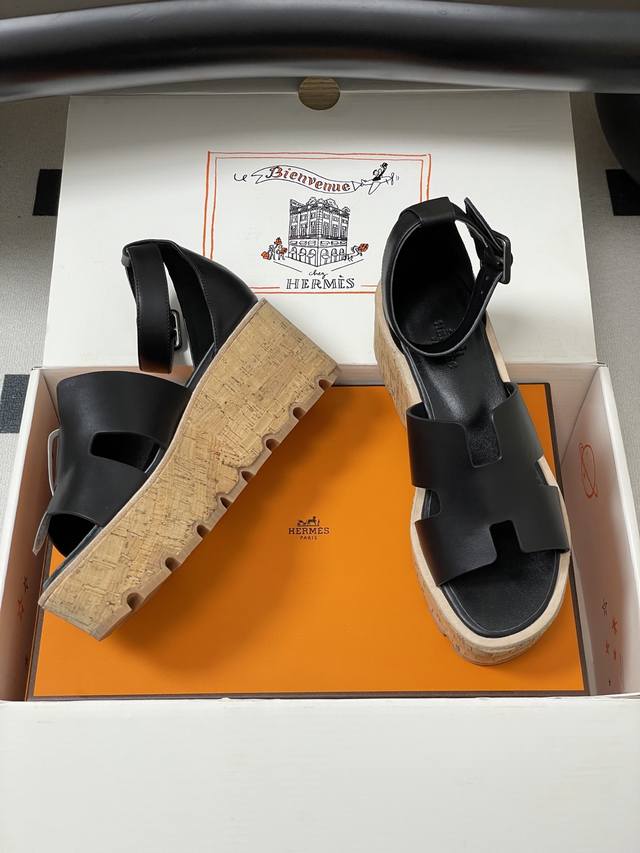 Hermes 爱马仕 H家 Luce 30凉鞋系列 厚底坡跟凉鞋 经典“H”型鞋面防水台高跟凉鞋