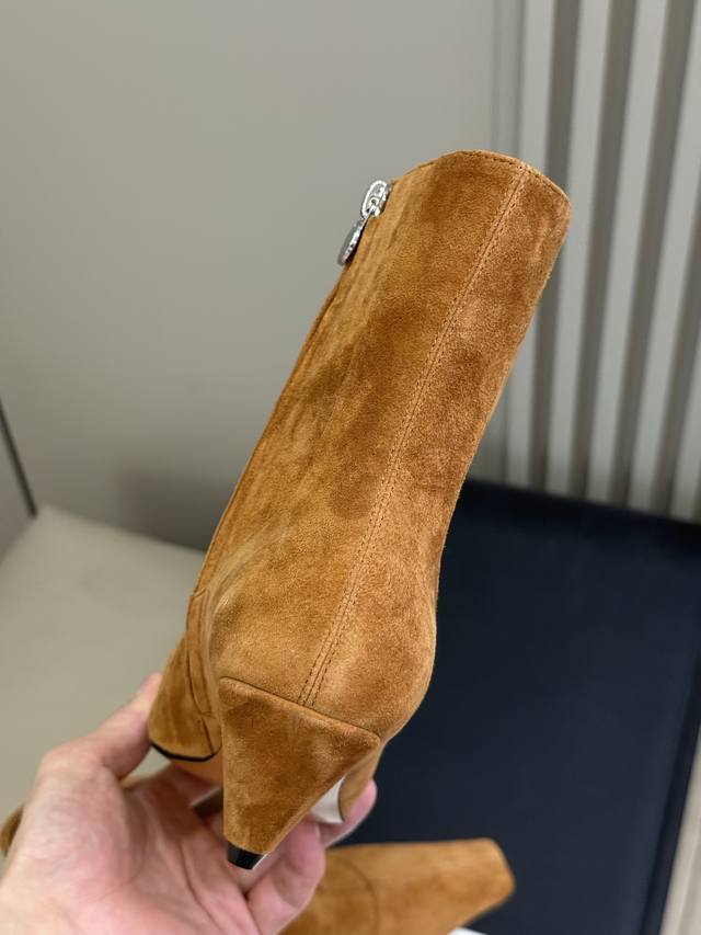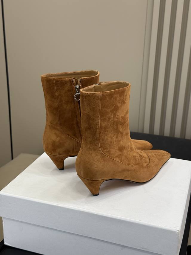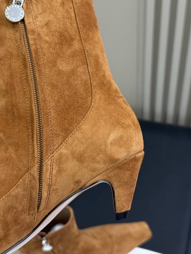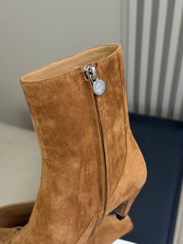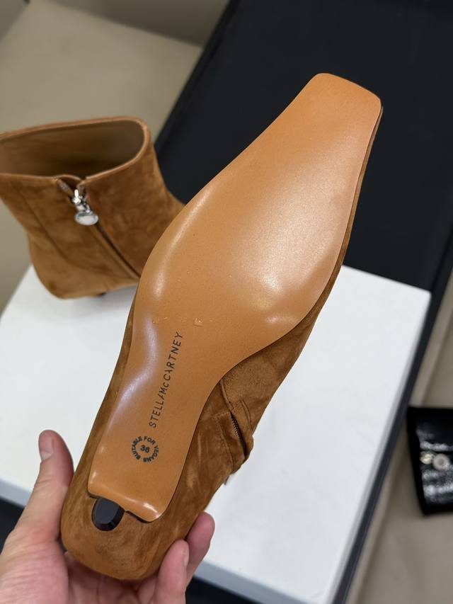 顶级品质 Stellamccartney 短靴新品 小酒杯跟搭配小方头,小调性在线啊 小猫跟的高度,很好穿很好搭! 亮面牛皮 和反绒羊皮两种材质! Size 3