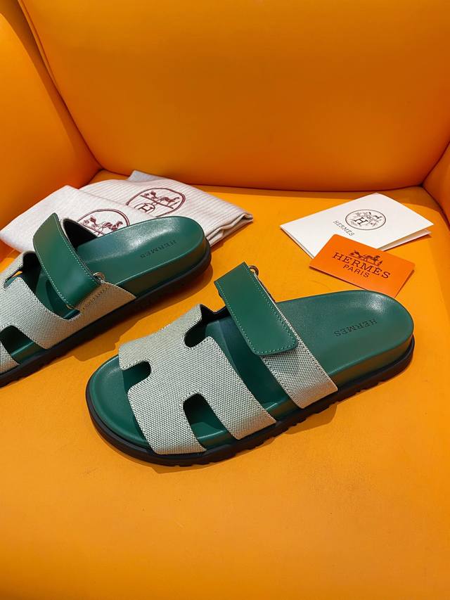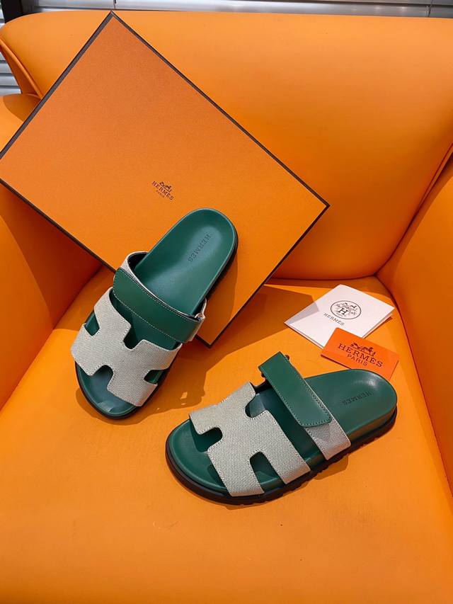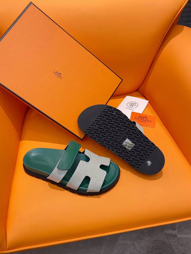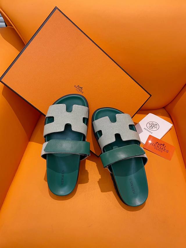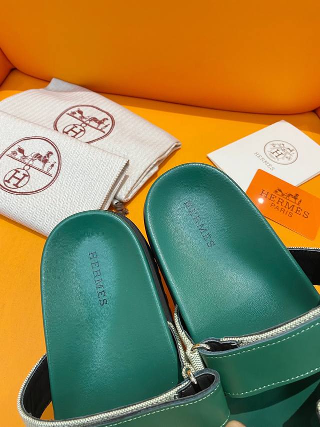 经典款拖鞋长盛不衰的优美鞋型,行走非常舒适 HermèS 包装升级,版型做工材料升级 Hermes市场最高版本纯手工鞋 顶级产品爱马仕跟鞋 经典之最,真正的手工鞋,连针线走线数量都和原版一样, 师傅级纯手工打造 !高端定制,独家产品,行业最高版本 面料:意大利原版面料