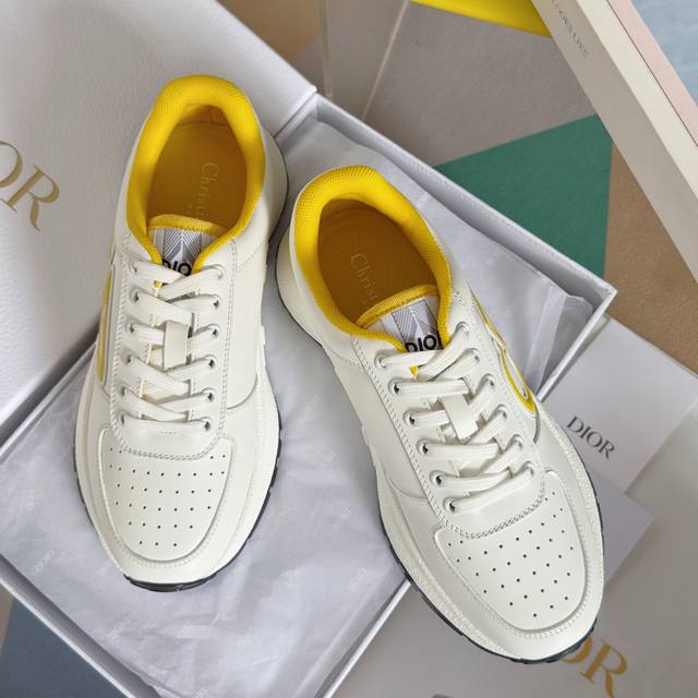原版购入开发 做货 这款 Run'n'dior 运动鞋是二零二五秋季系列新品,以优雅时尚的造型重新演绎运动风格。鞋面采用白色网眼织物精心制作,鞋带和鞋跟饰以 Christian Dior Paris 标志。精致的双色鞋底轻盈柔软,可为各式休闲造型增添高订气质