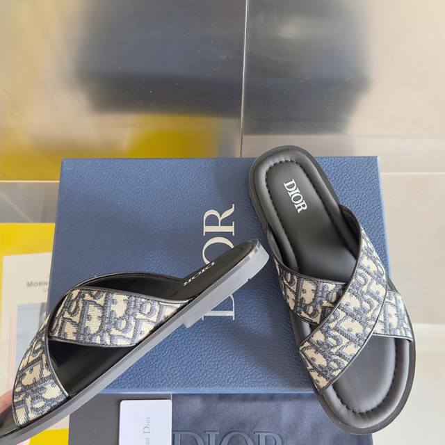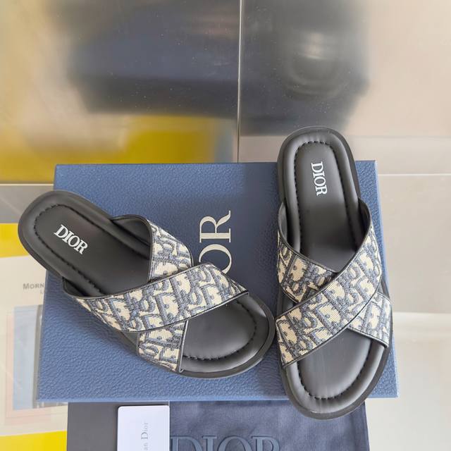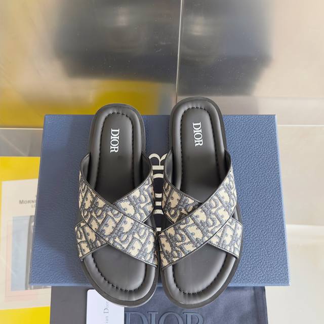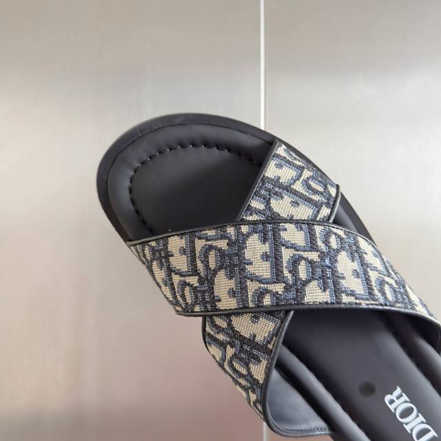 原版购入开发 做货 这款 Dior Alias 夹趾凉鞋是二零二五夏季男装系列新品,彰显休闲高雅的风范。提花面料鞋面饰以经典的黑色 Oblique 印花,别具一格,皮革和橡胶鞋底带有 Oblique 图案防滑花纹,打造理想舒适的穿着体验。可与本季的各式休闲装扮轻松搭配