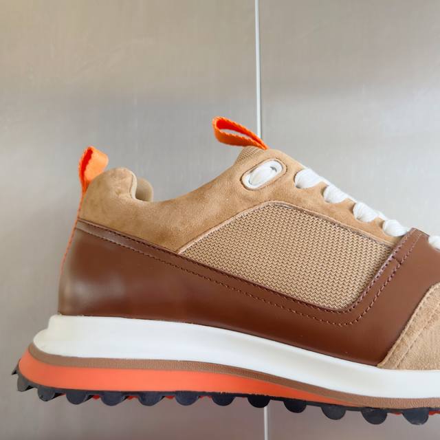 原版购入开发 做货 小牛皮、Epsom小牛皮和麂皮山羊皮运动鞋。轻盈几何鞋底,打造时尚都市造型