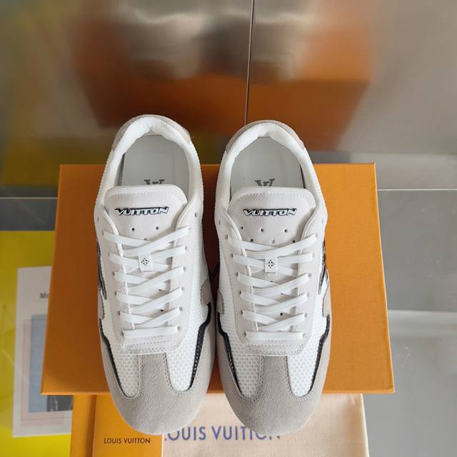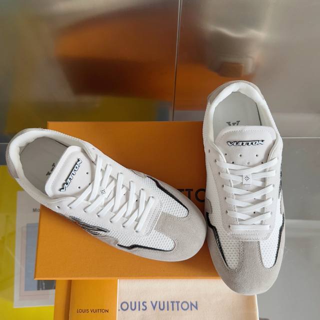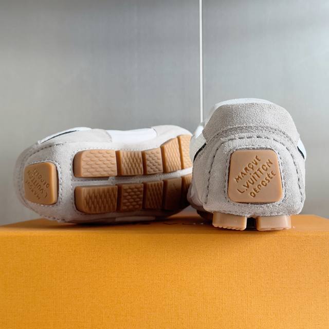原版购入开发 做货 本款 Lv Rally 运动鞋拼接绒面牛皮革和网格面料,为驾驶鞋构型融入橡胶垫外底,成就舒软与轻盈兼备的摩登之选。侧面 Lv 字母、后部手写体路易威登标识,以及鞋舌与外底的 Vuitton 标识共同烙下品牌印记