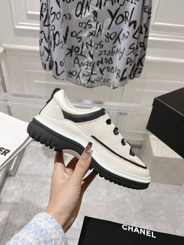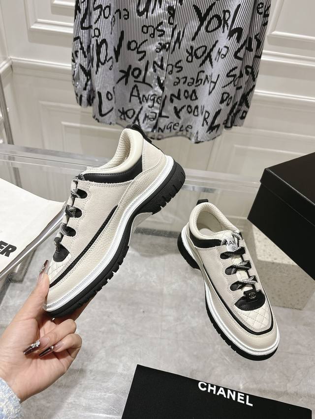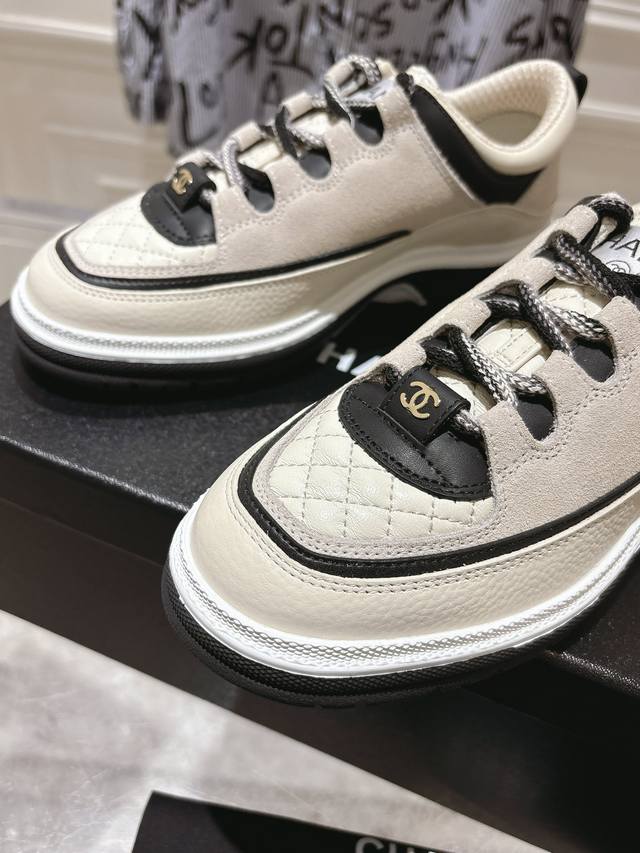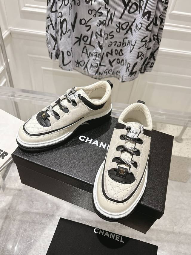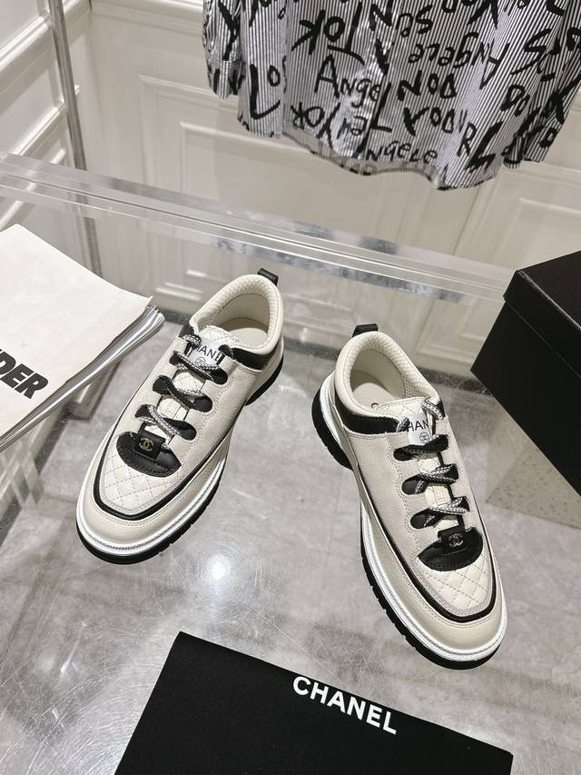 顶级版本配全套飞机盒Chanel25C菱格熊猫运动鞋! 购入原版1:1开发 小牛皮材质,原版开模大底 Size 35 36 37 38 39 40