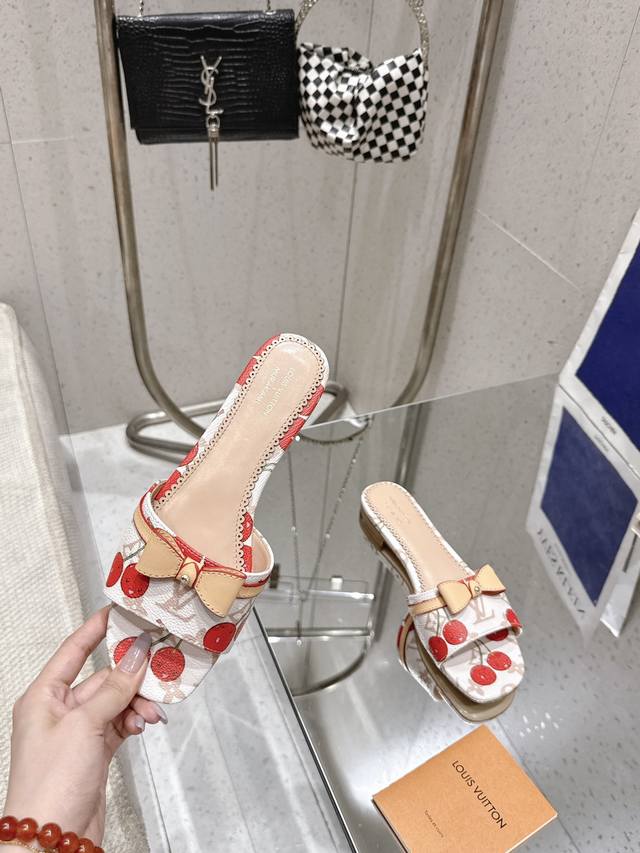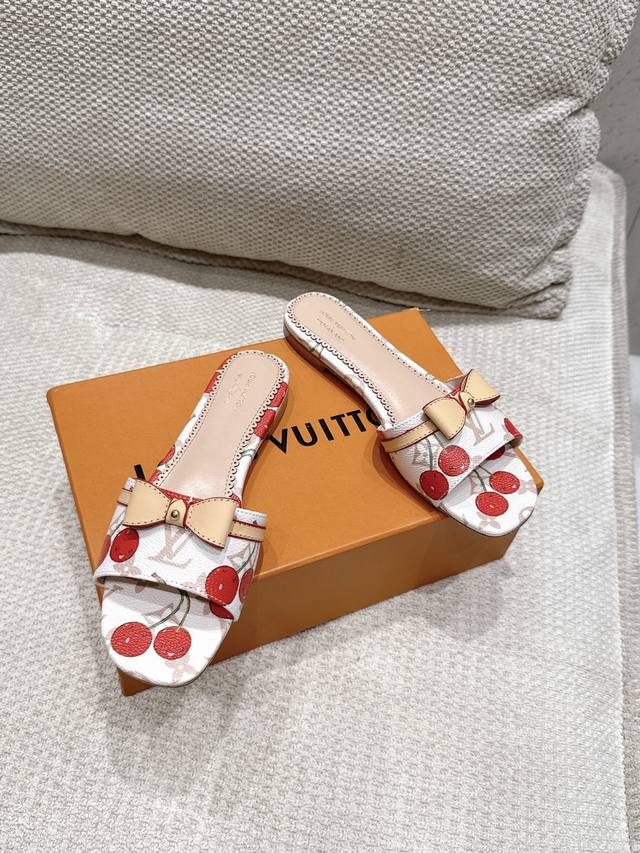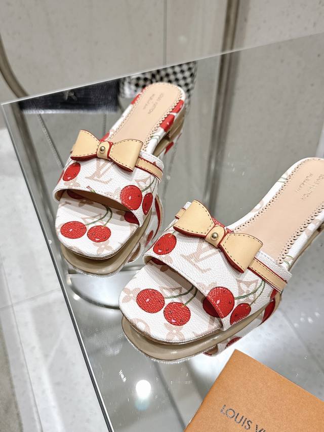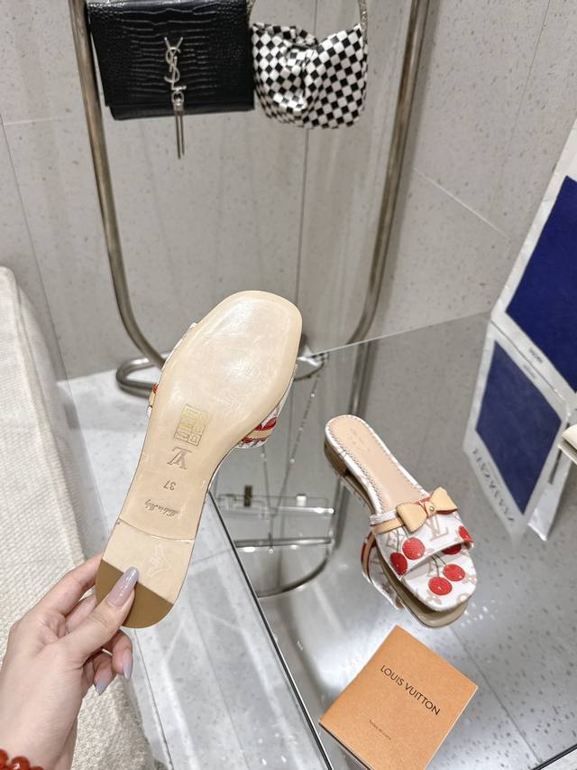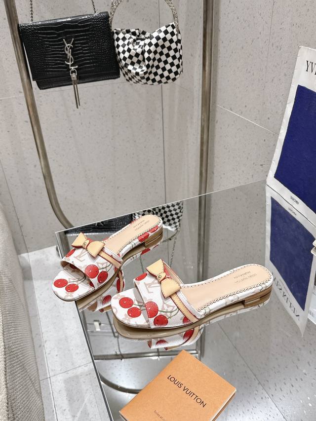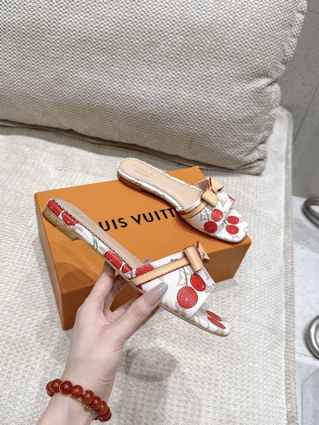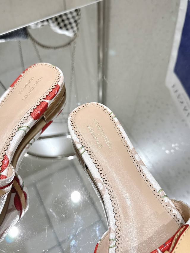 本款 樱桃系列 Lv X Tm 9Am平底拖拥有瞩目线条,点明路易威登 X 村上隆复刻系列的灵动格调。明丽樱桃图案浮现于 Monogram 印花,加衬魔术贴鞋带点缀路易威登标识皮革贴饰。韧性鞋垫配有皮革内衬,与轻盈凸纹外底共同升级舒适体验。