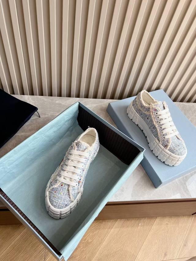 普拉达Prada秋冬新款,顶级版本。设计感很强的乞丐风帆布鞋。鞋面水洗帆布,组合Tpu耐磨大底中间夹层是软Eva,整体脚感舒适不会生硬。经典款,复古艺术感附体, 款式百搭时尚,材质,面料水洗帆布,内里羊皮,原版金属三角扣,码数34至41