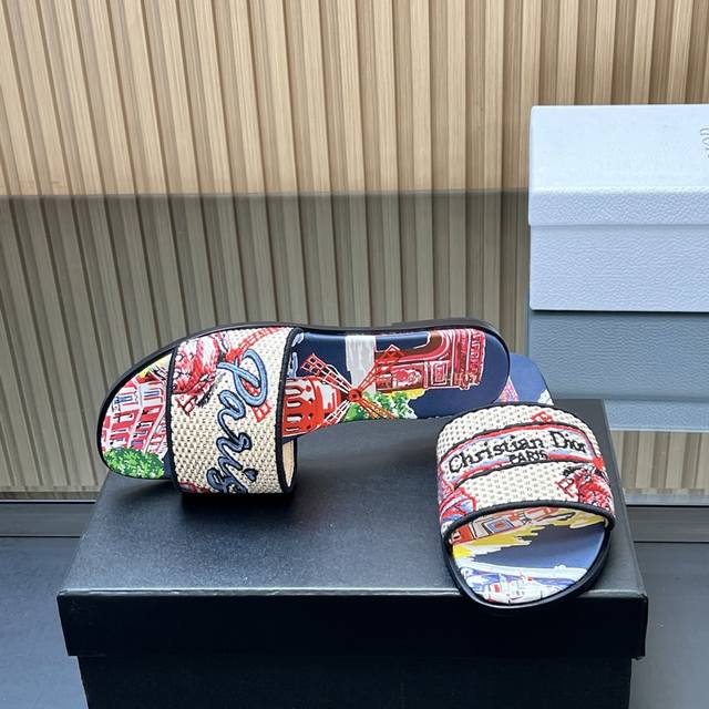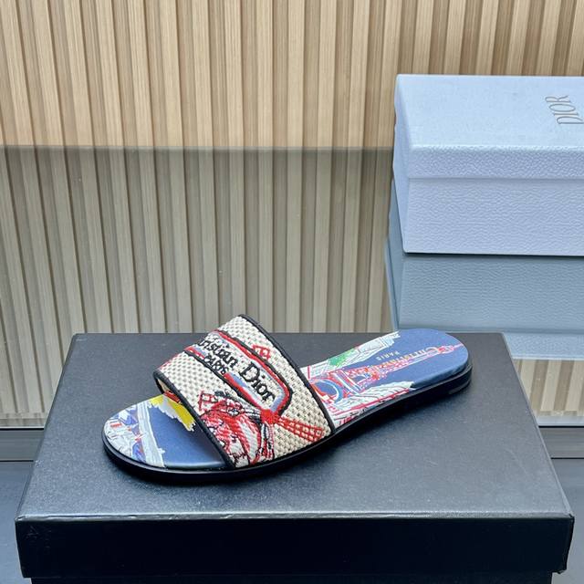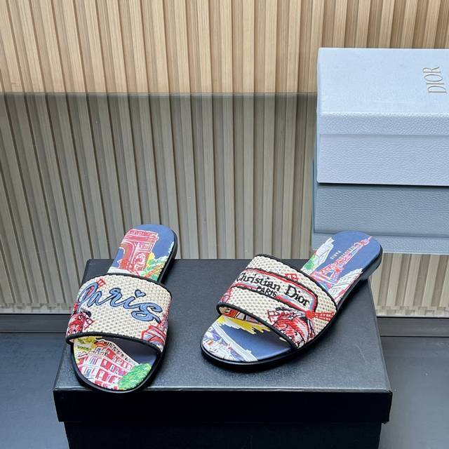 / 顶级版本 迪奥春夏新款升级刺绣拖鞋,这款拖鞋真的好穿又好看,今年的颜色真的超美,每个色都想入 无敌显白 面料:原版定制刺绣面料 大底:真皮大底 内里:水染羊皮
