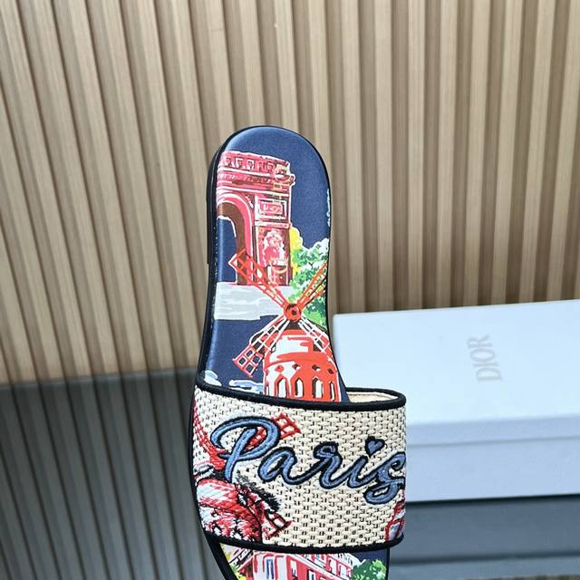迪奥春夏新款升级刺绣拖鞋,这款拖鞋真的好穿又好看,今年的颜色真的超美,每个色都想入 无敌显白
