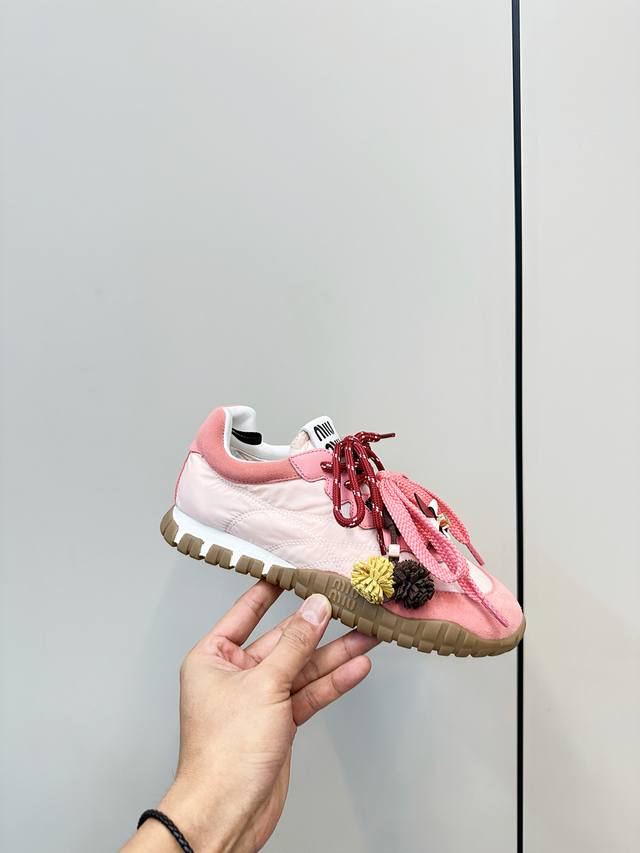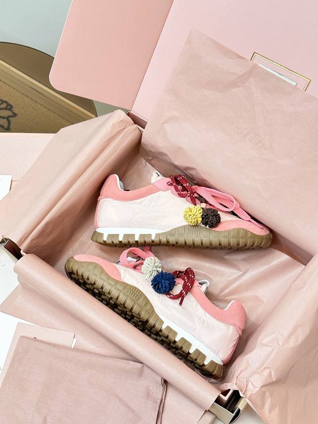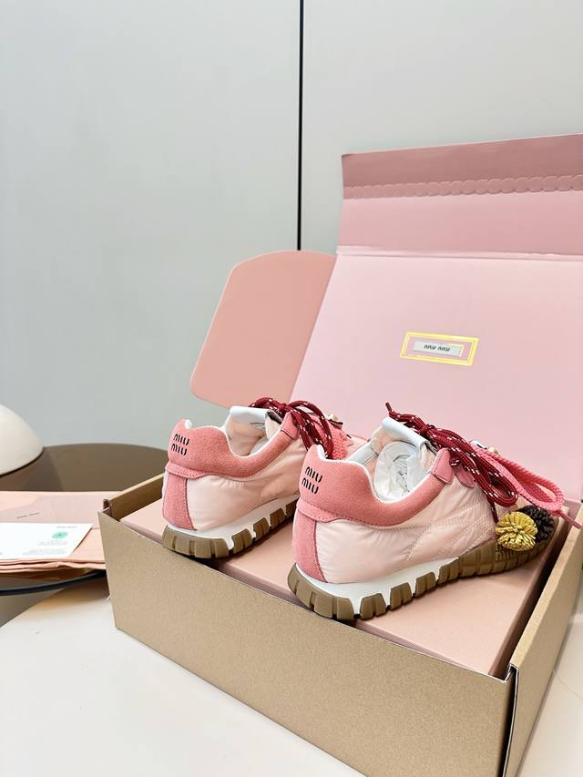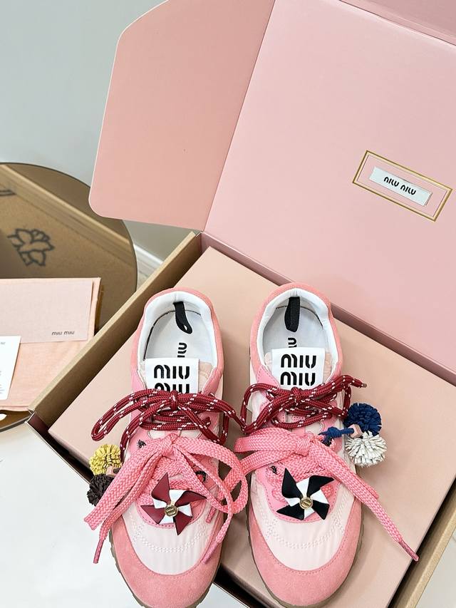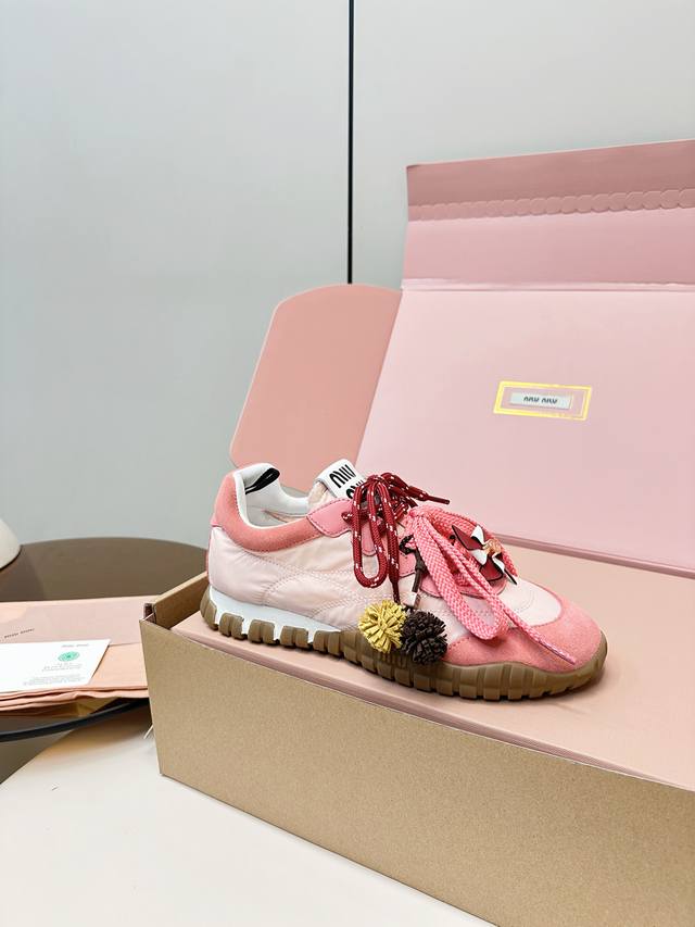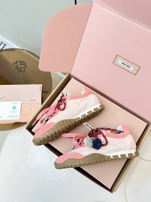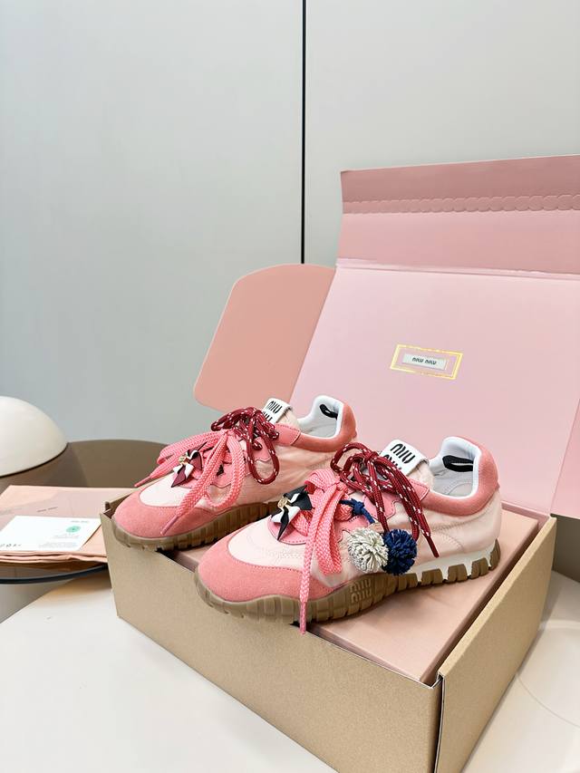 顶级版本 飞机盒套装+原版扣件 Miu Miu 25Ss 春夏新款走秀Miumiu 德训 休闲鞋 秀场工艺来自Miu Miu系列的细节特写 新季的潮流要素 与此