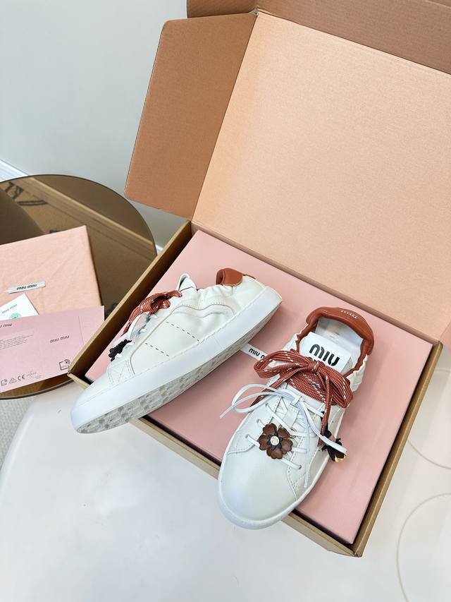 Miumiu|缪缪25K 新款系带小白鞋德训鞋休闲鞋