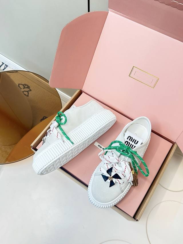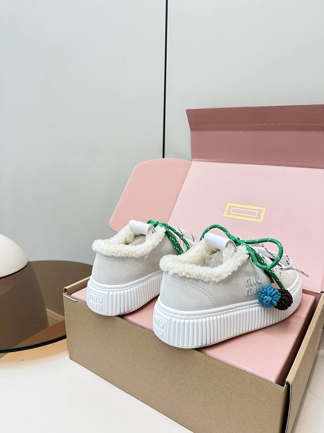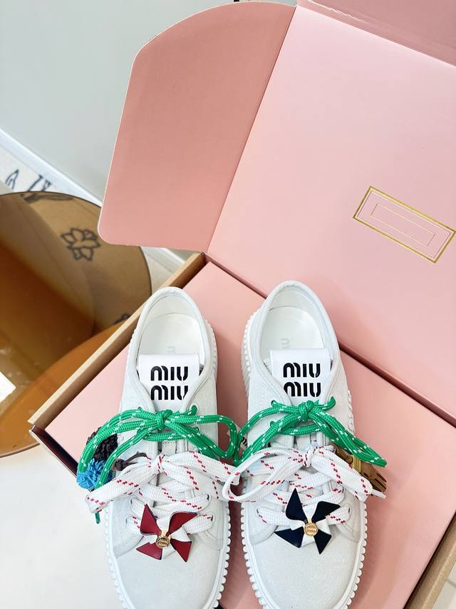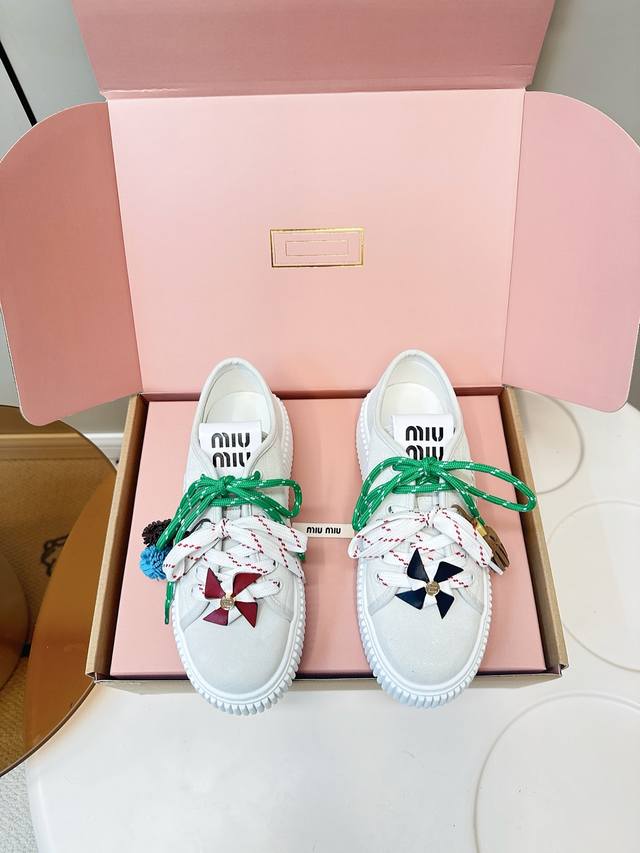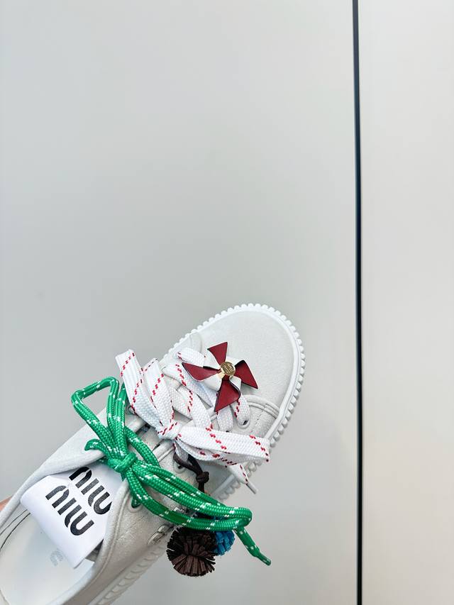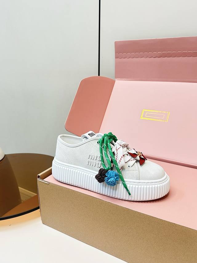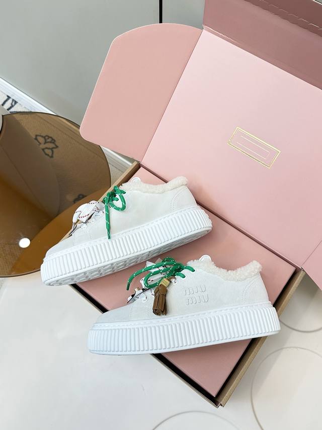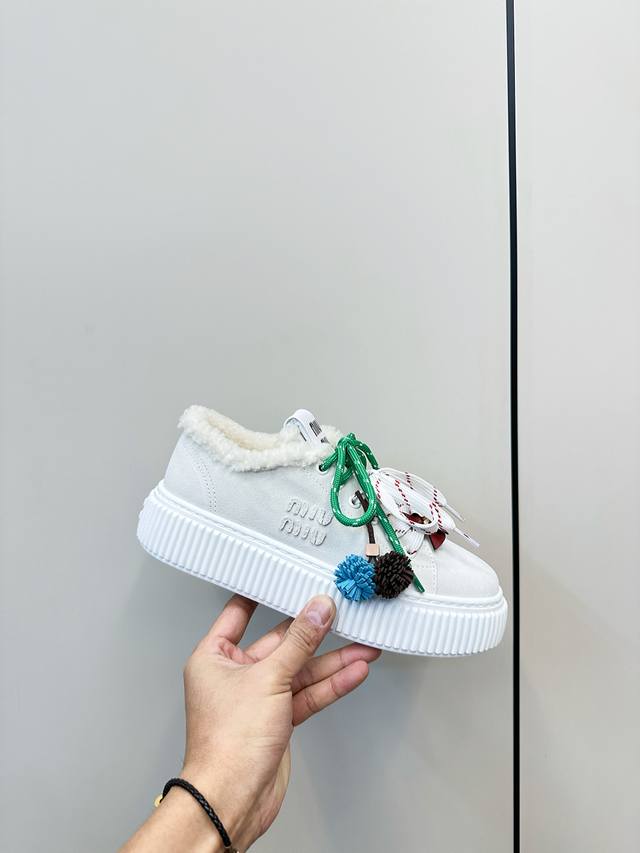 Miumiu| 缪缪2025新品3D刺绣厚底休闲鞋 皮里 ,毛里