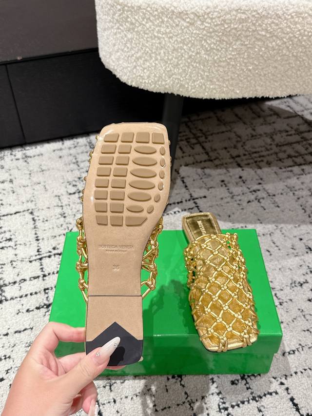 Bv 25 Riva Mule 女士平底 手工编织 穆勒拖鞋 凉鞋