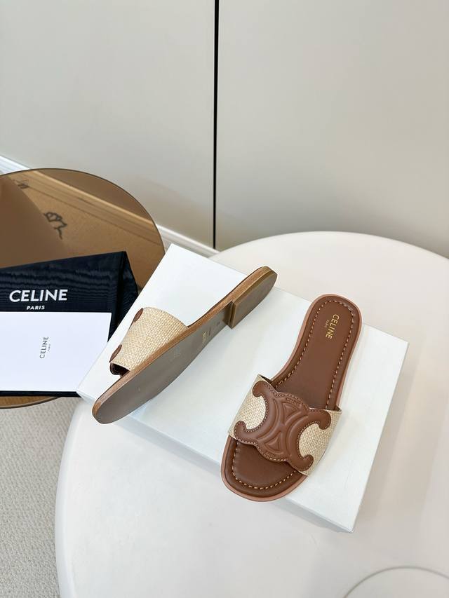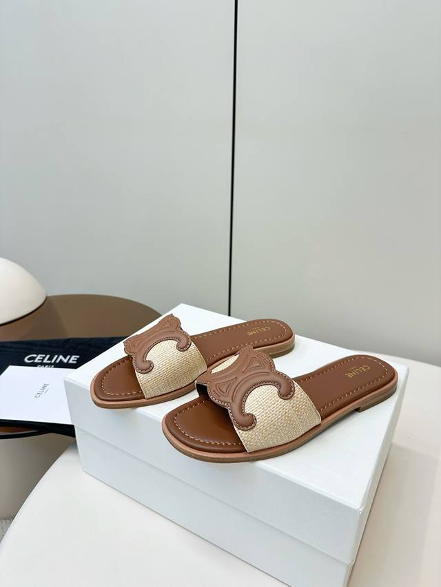 Celine|塞琳 2025春夏新款凯旋门平底拖鞋
