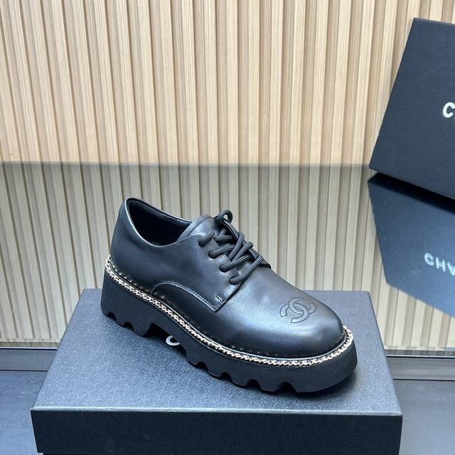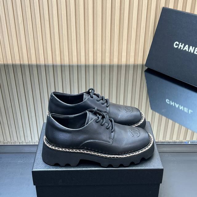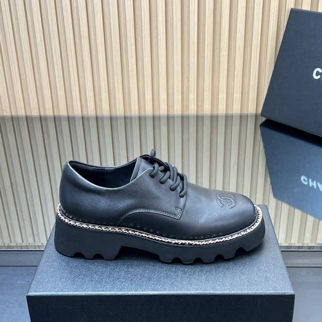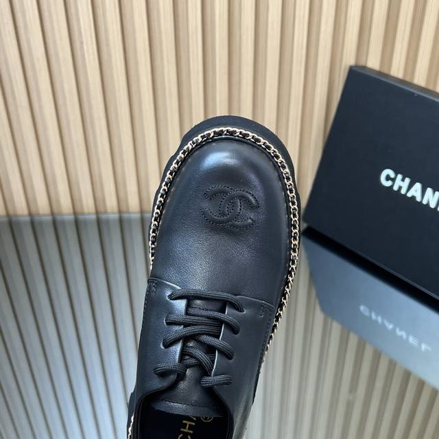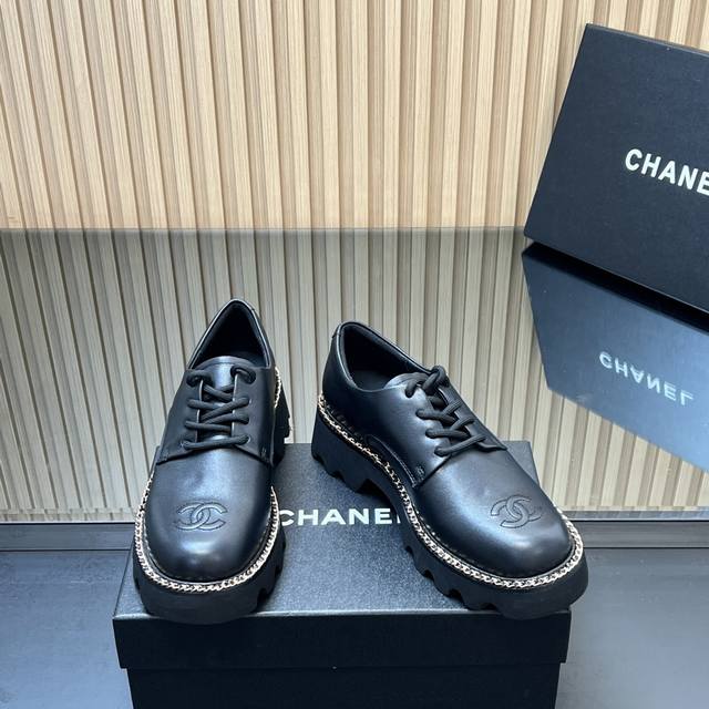 Chanel 香奈儿25秋冬新款链条厚底系带乐福鞋 单鞋、小皮鞋