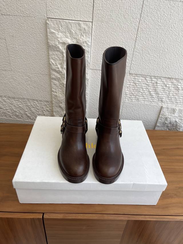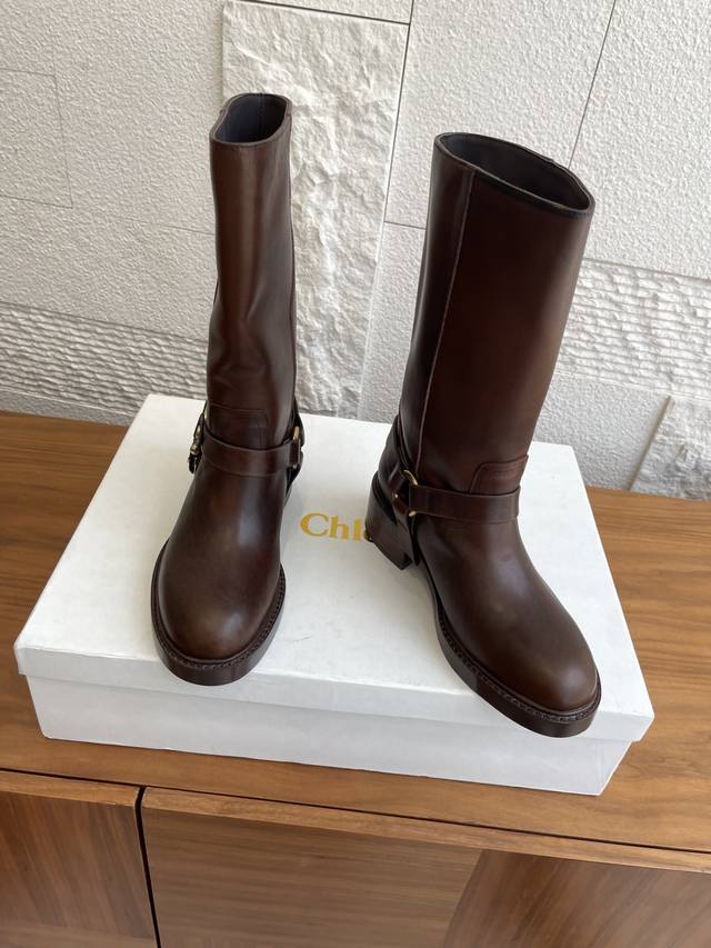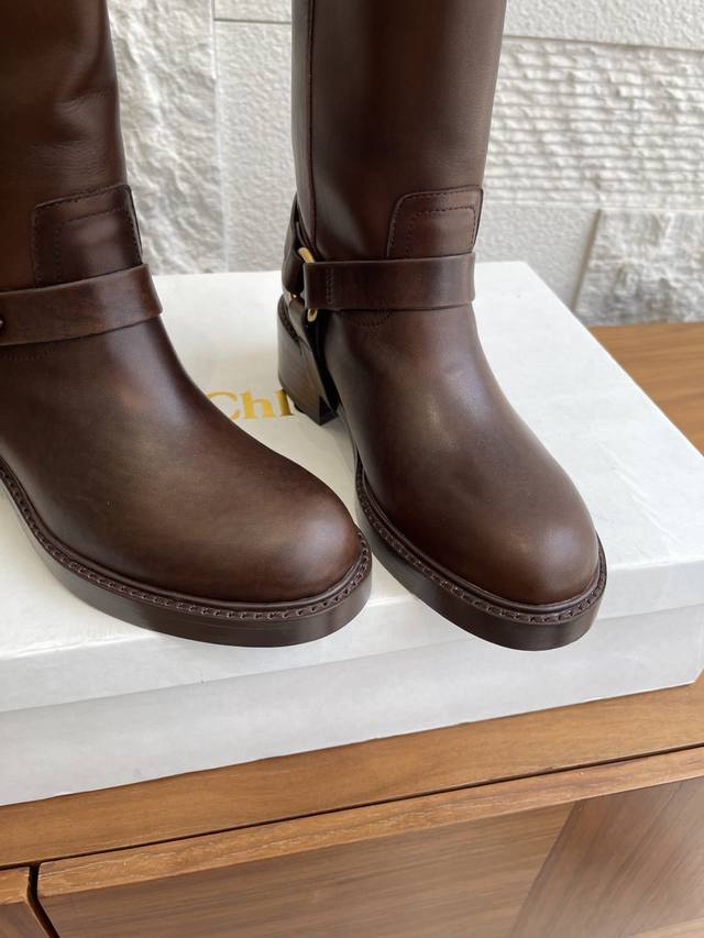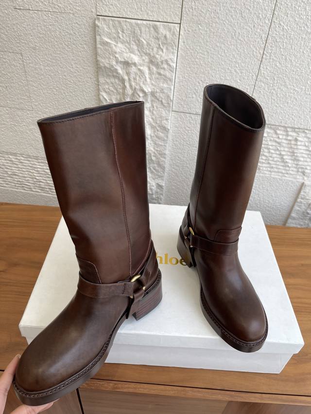 Chloe 克洛伊 25Ss 秋冬新款 复古 圆头 粗跟 机车靴
