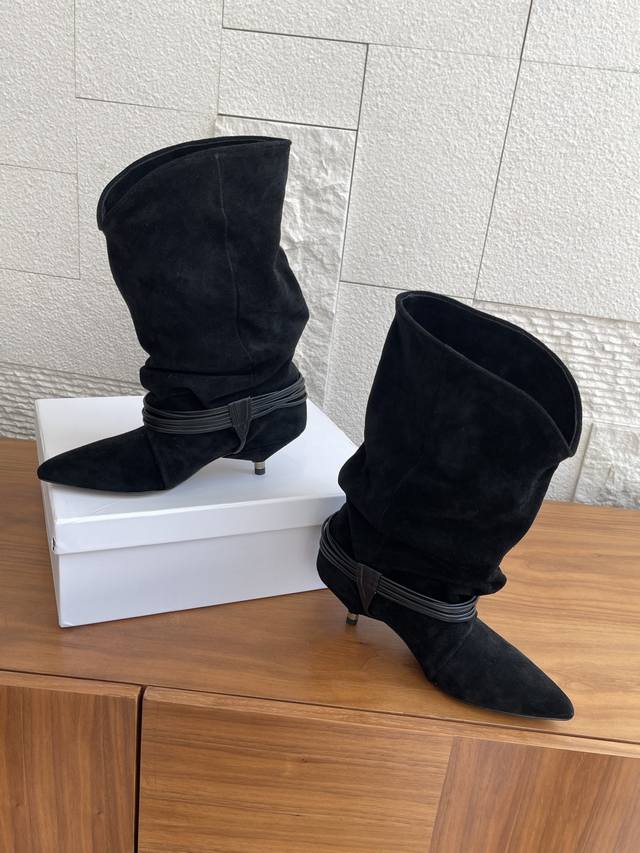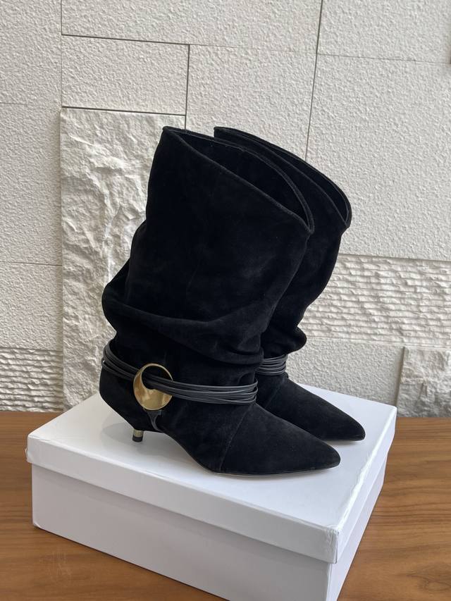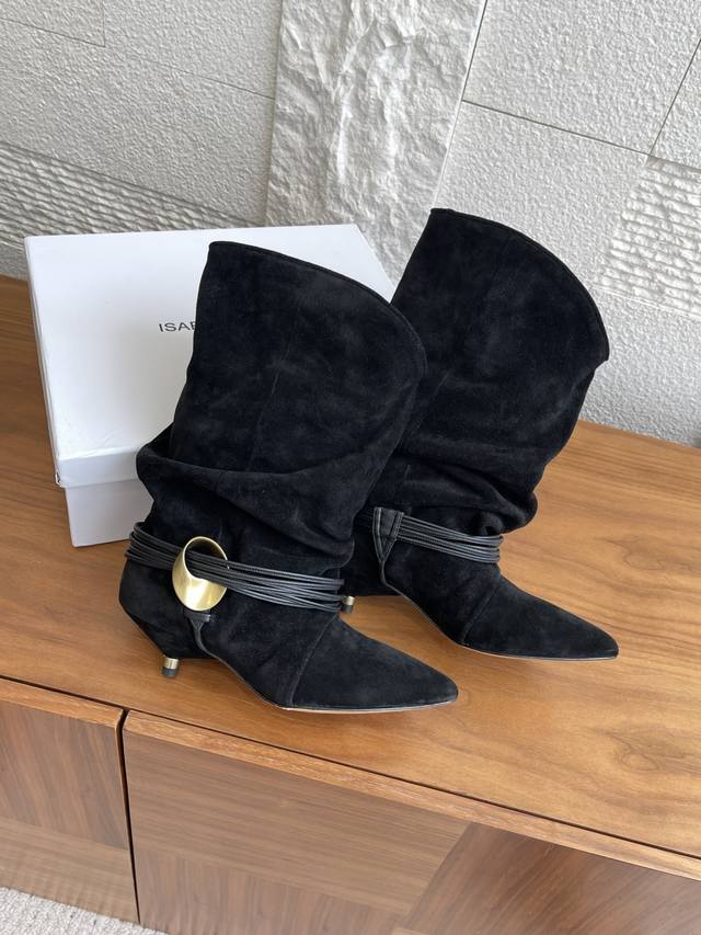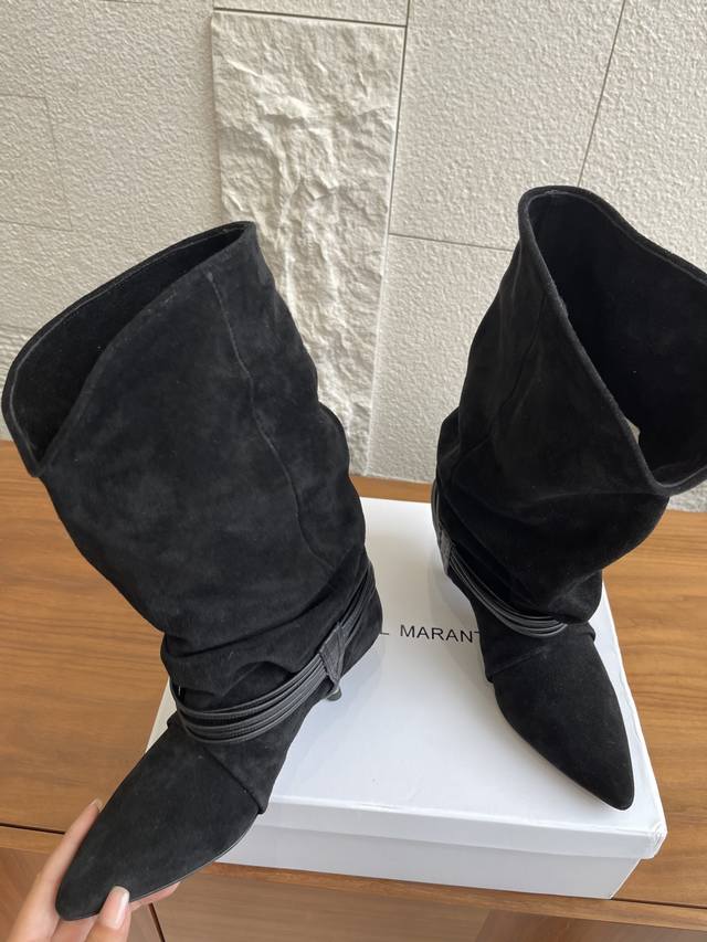 Isabel Marant 2025 早秋新款 Edrika 垂坠 翻口 猫跟 堆堆靴 长靴
