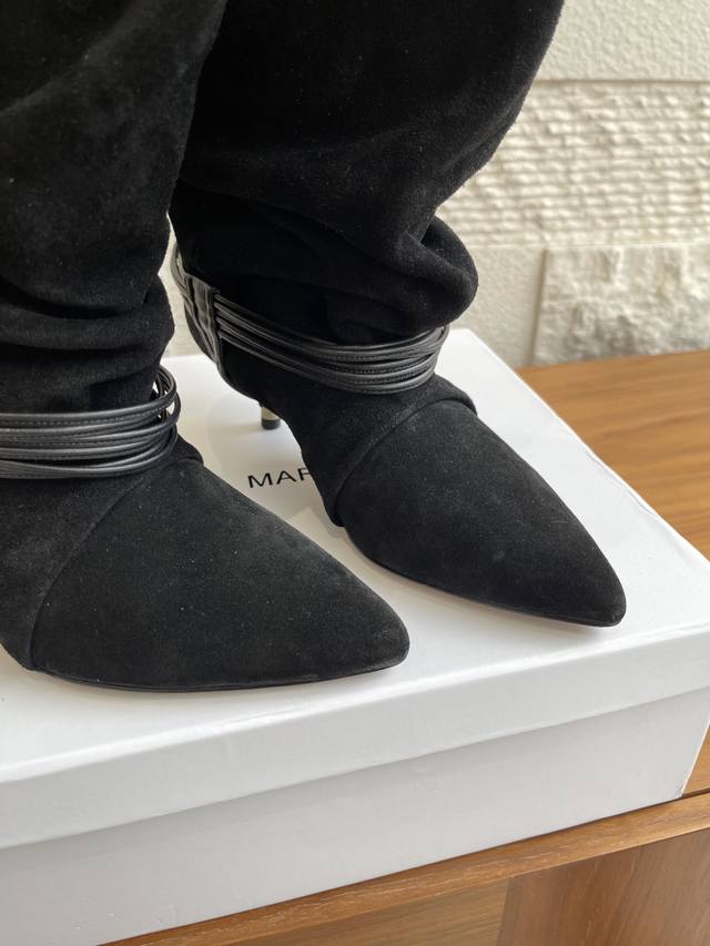 Isabel Marant这个品牌非常的开放、真诚。为了保证作品的自由,垂坠皮靴筒呈现慵懒护腿效果,尖头设计延伸腿部线条。镀金首饰皮带点缀镌刻品牌徽标,真皮包裹锥形鞋跟镶嵌金属细节,4.5厘米舒适高度。