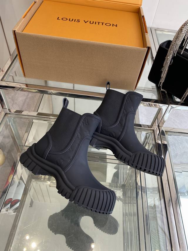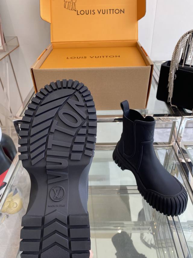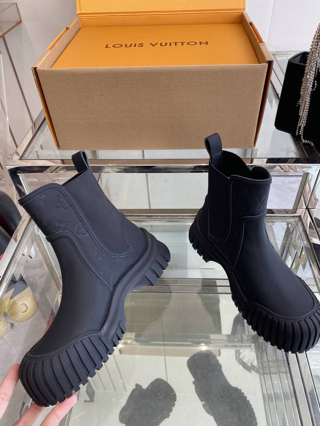 / 顶级版本 Louis Vuitton路易威登 网红,大明星走秀新款 一脚蹬短靴 休闲百搭时尚潮流款,上脚舒适 搭配路易威登标识点缀亮点 八寸靴大气显气质 面料: