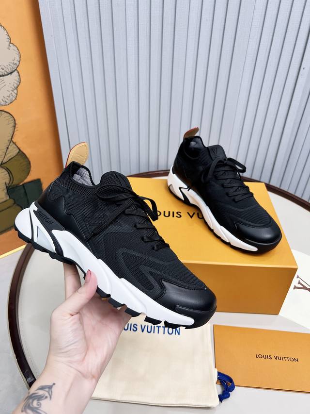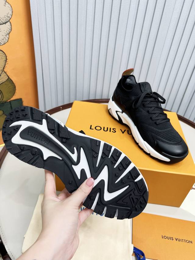 原版购入开发 做货 本款 Lv Runner Tatic 运动鞋融合飞织面料材质,演绎传统登山鞋的灵感启发。Lv 字母抒写于一侧,路易威登标识,轻盈耐磨的橡胶外底完善整体