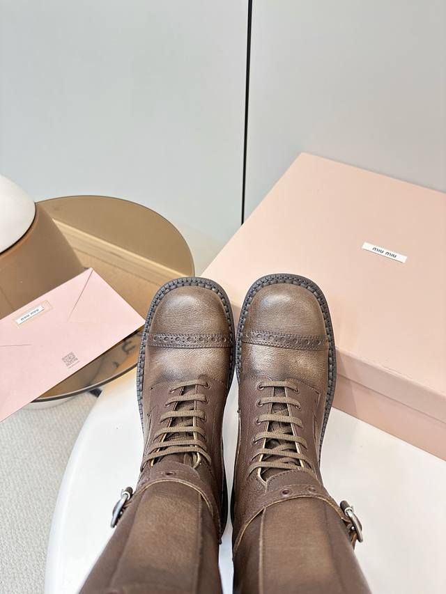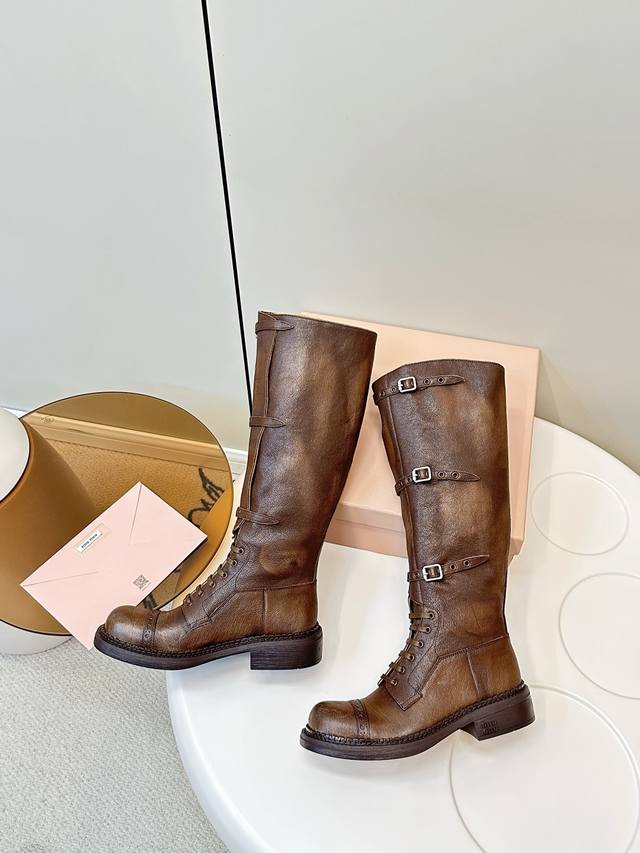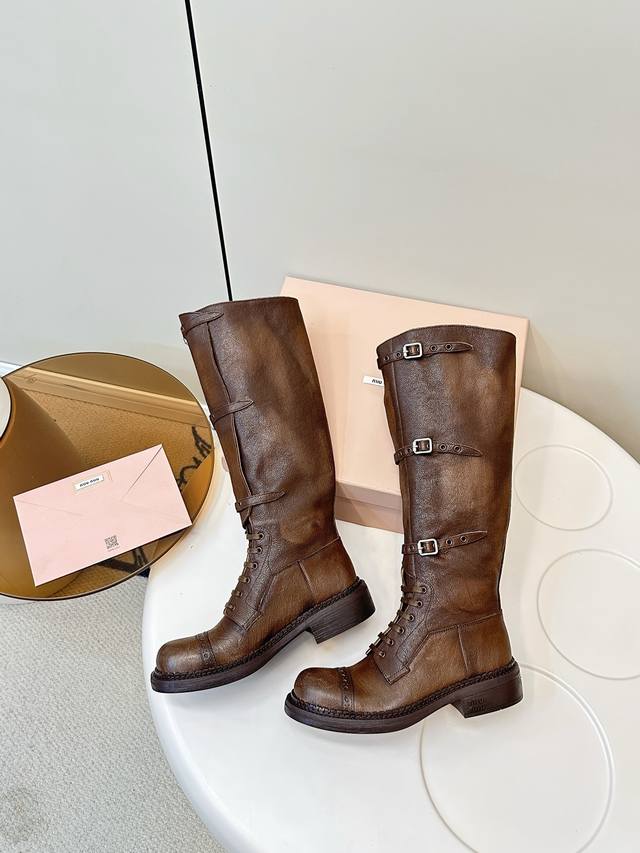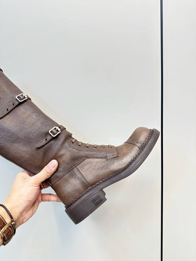 Miumiu|缪缪秋冬走秀款复古机车靴 长靴