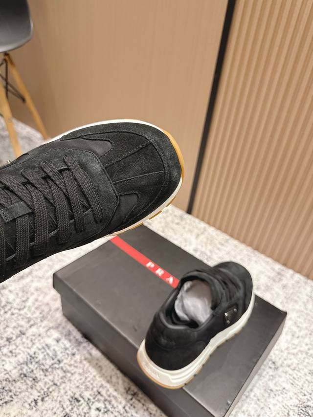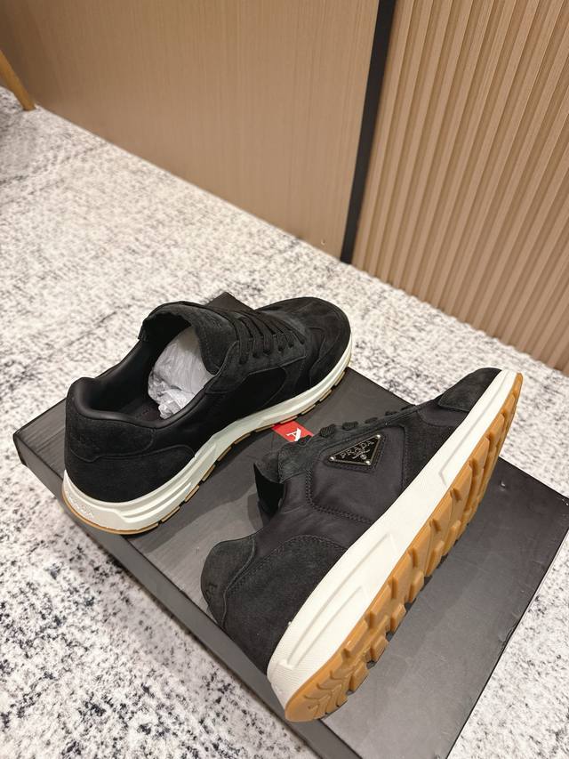 Prada 普拉达 男士新款运动休闲鞋,这款运动鞋鞋面采用进口小牛皮。