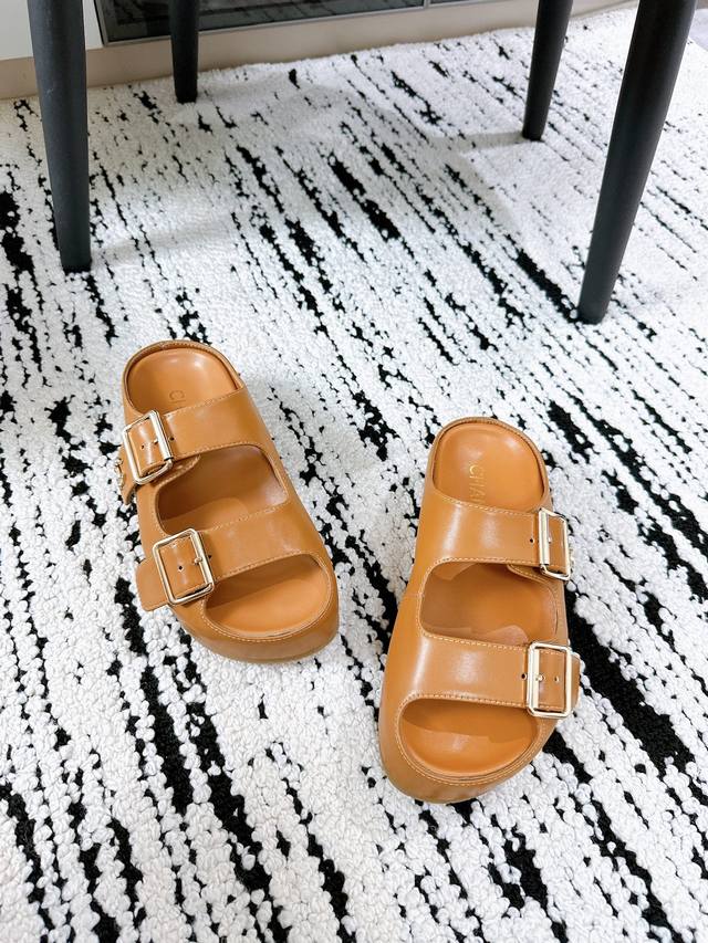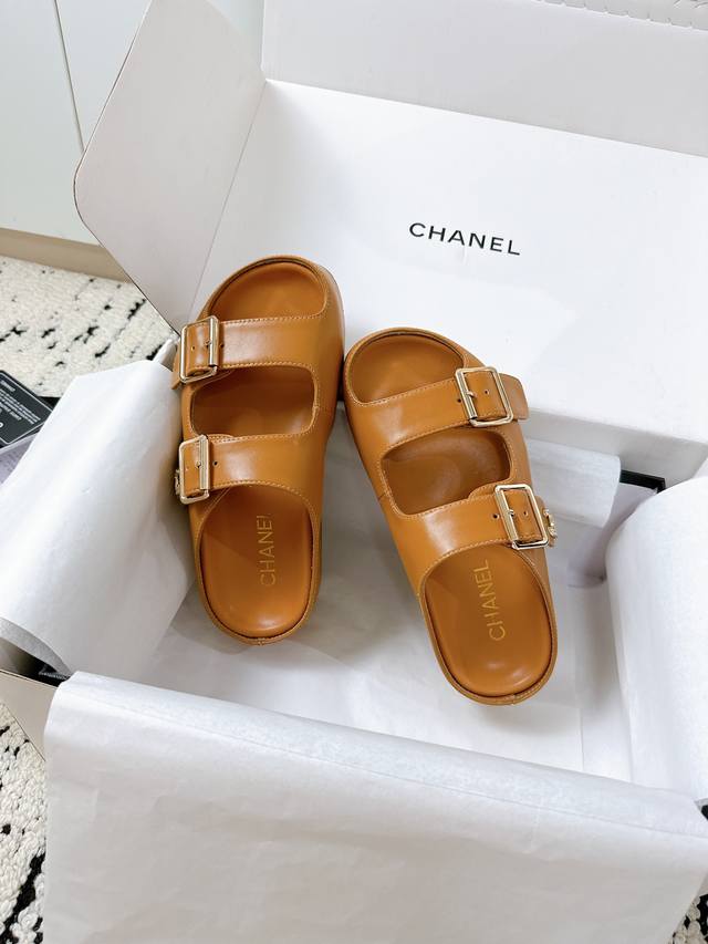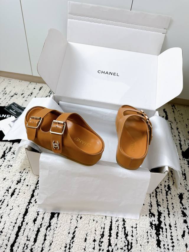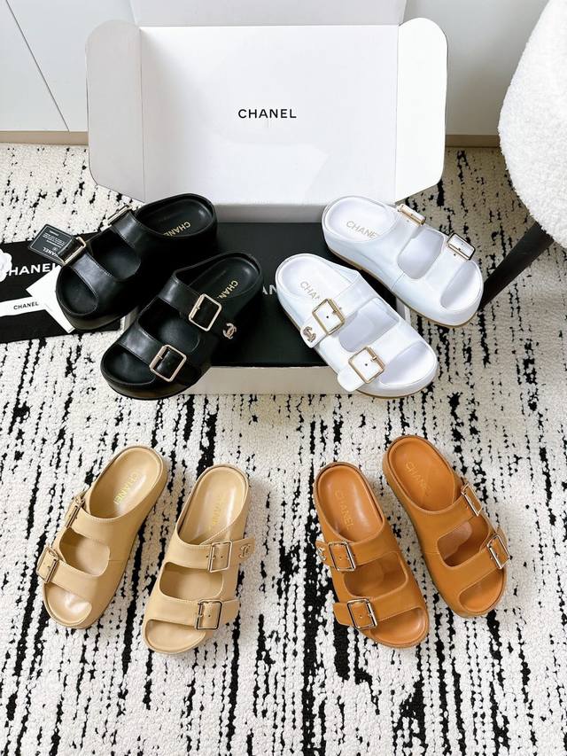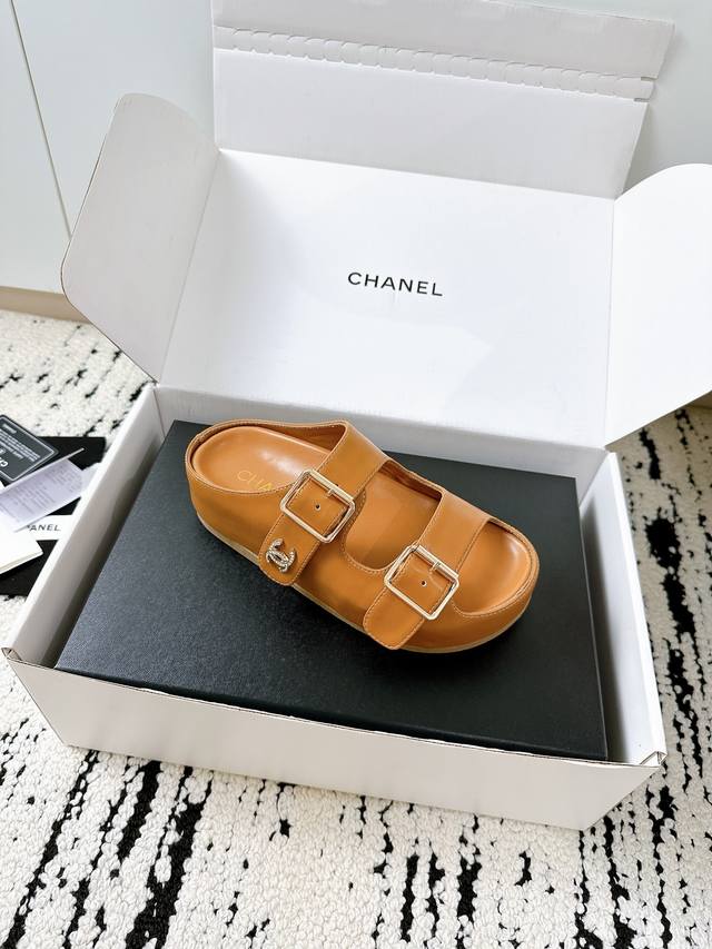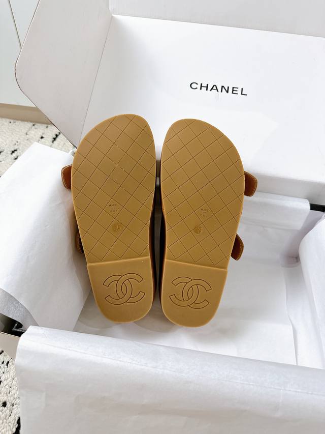姐妹们!这双Chanel新款拖鞋也太绝了吧! **进口牛皮面料**,上脚软糯不磨脚,质感直接拉满~ **双C钻扣** Blingbling的,低调中透着奢华,随便搭都高级感爆棚!