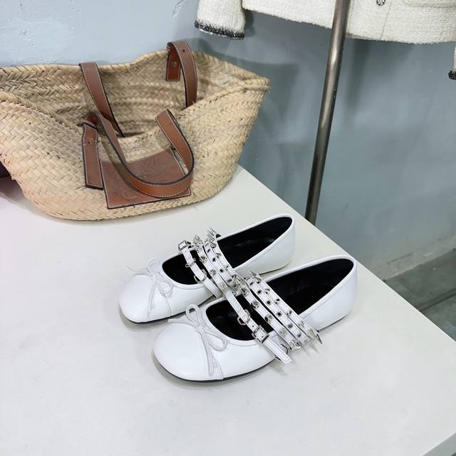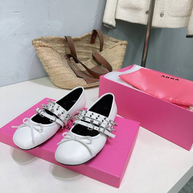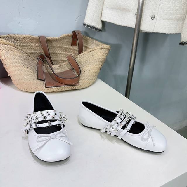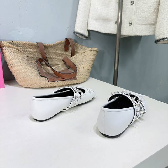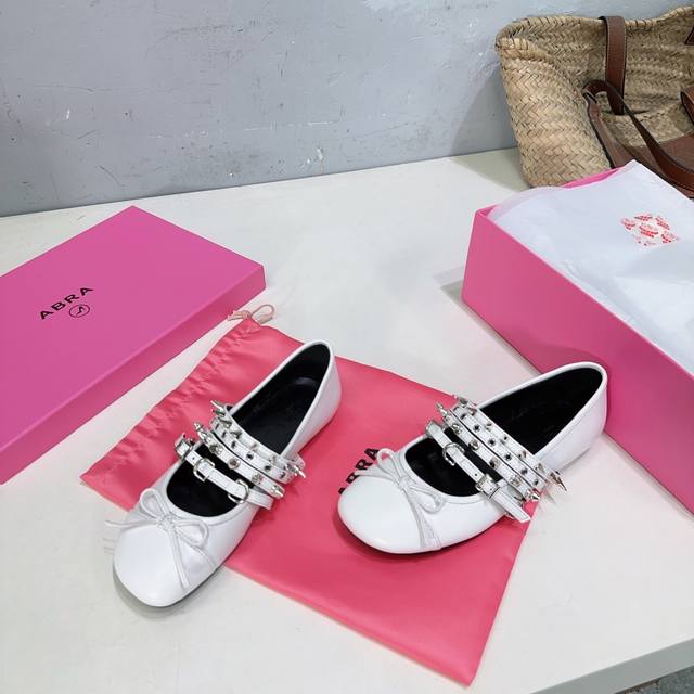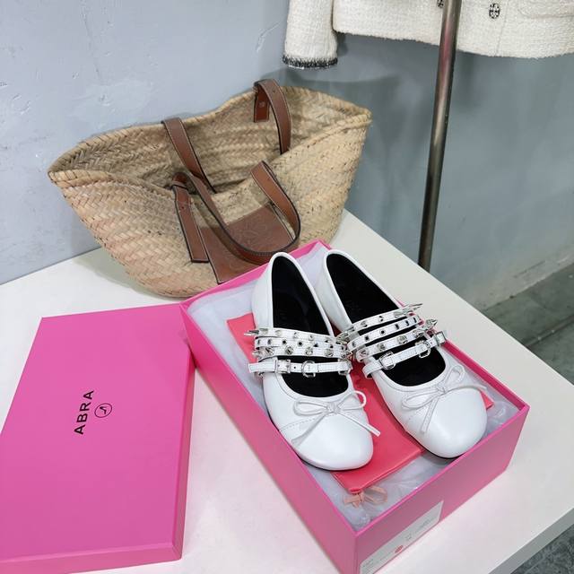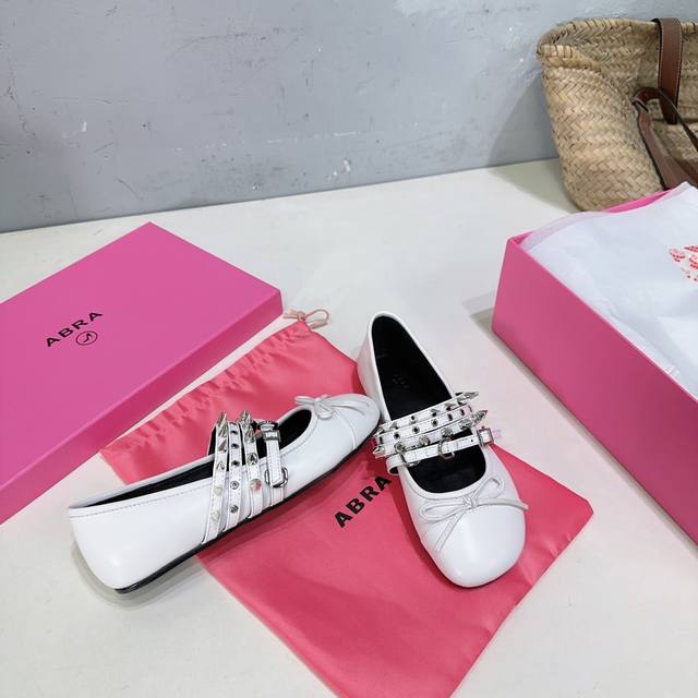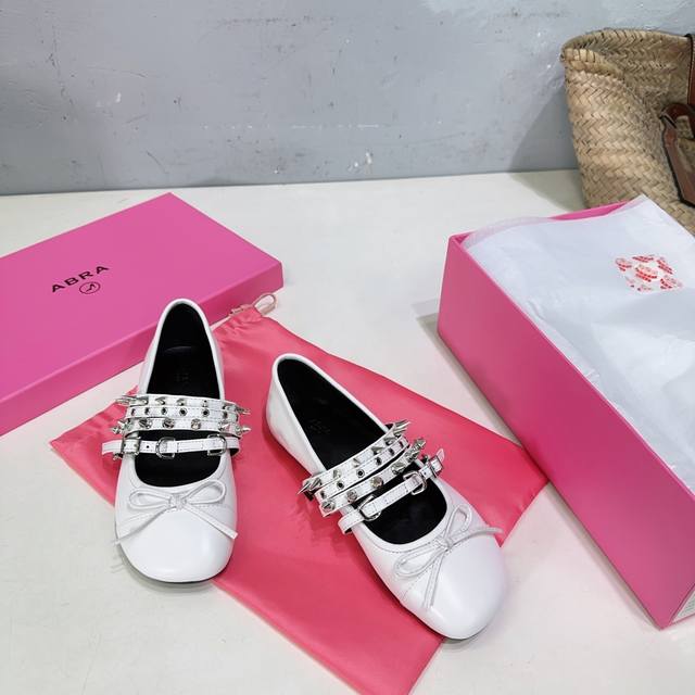 高品质出厂单鞋 !小众潮牌好物分享 Abra25早秋新款鉚釘平底圆头芭蕾舞鞋半拖单鞋!