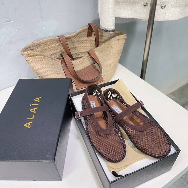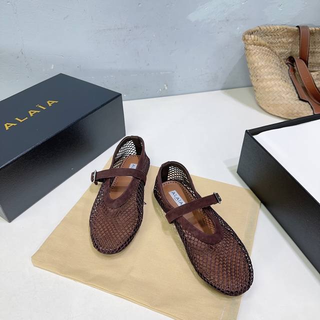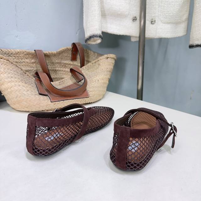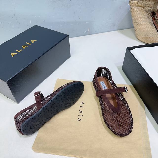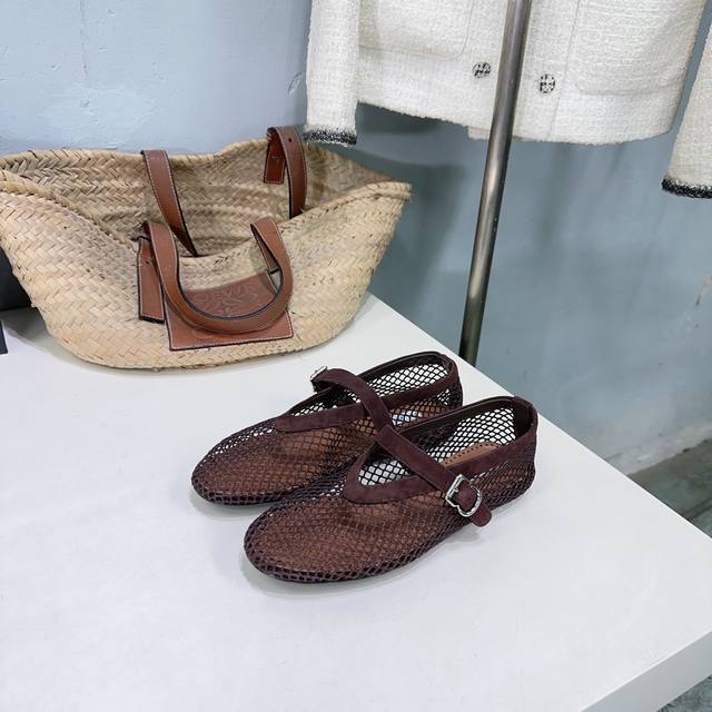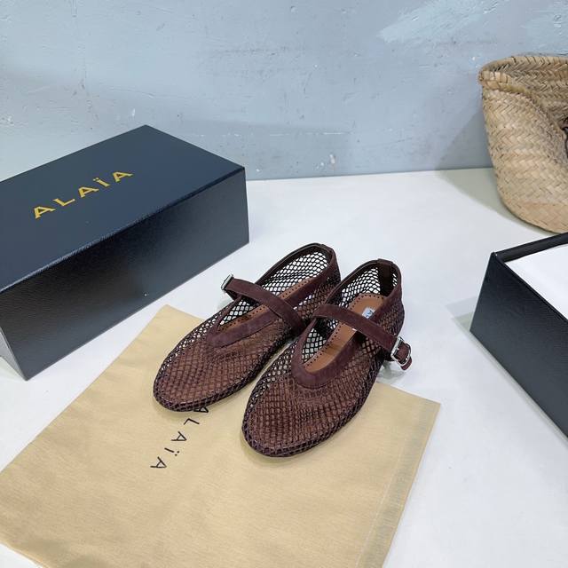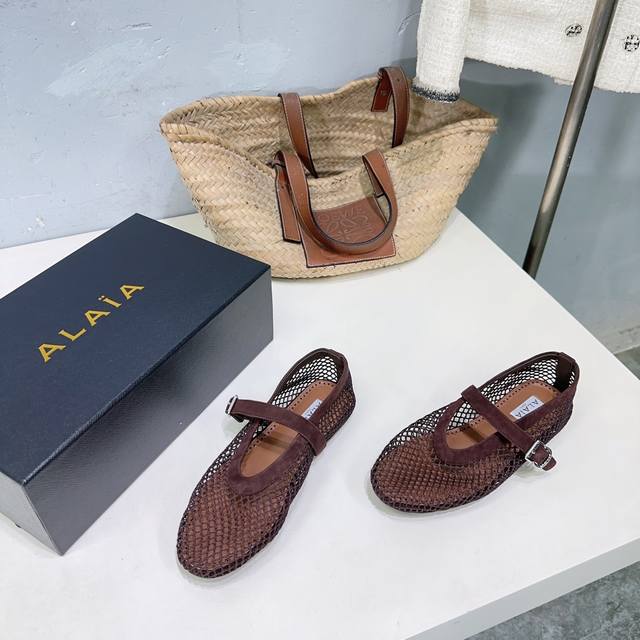 高品质出厂 !小众潮牌Alaia 25春夏新色羊拼接京渔网面平底网鞋凉鞋!最新春夏时装秀新款系列平底芭蕾舞鞋!法国高端一线高定品牌!时尚界最后的手艺人