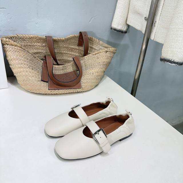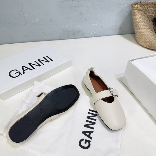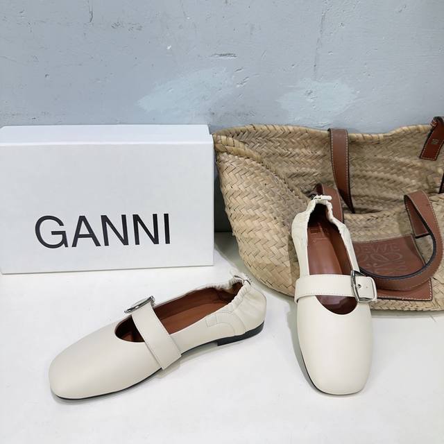 高品质出厂 !小众潮牌Ganni25春夏走秀款一字扣带小方头平底单鞋! 一年四季可都以穿的单鞋了来,一双神封的四季鞋 约简复古设计