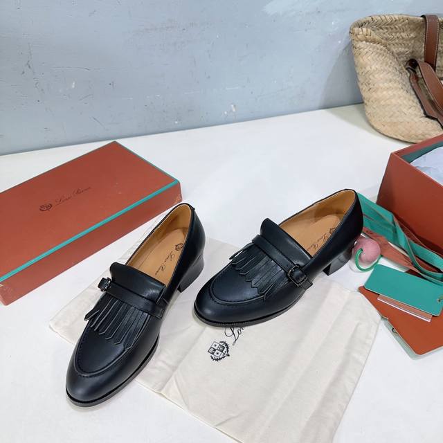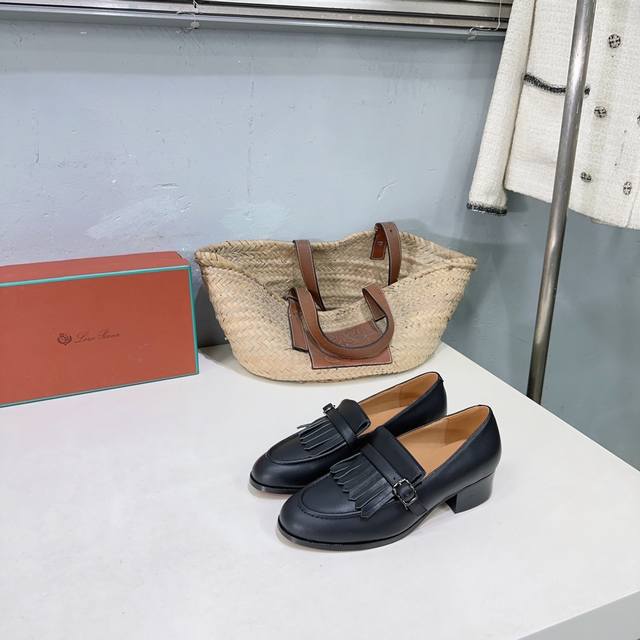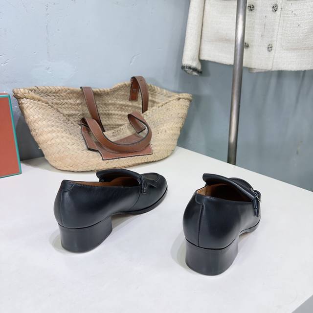 25早秋新款流苏小牛皮粗跟乐福鞋老钱风复古单鞋!