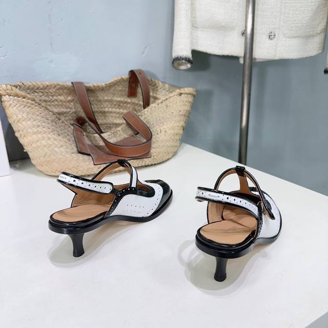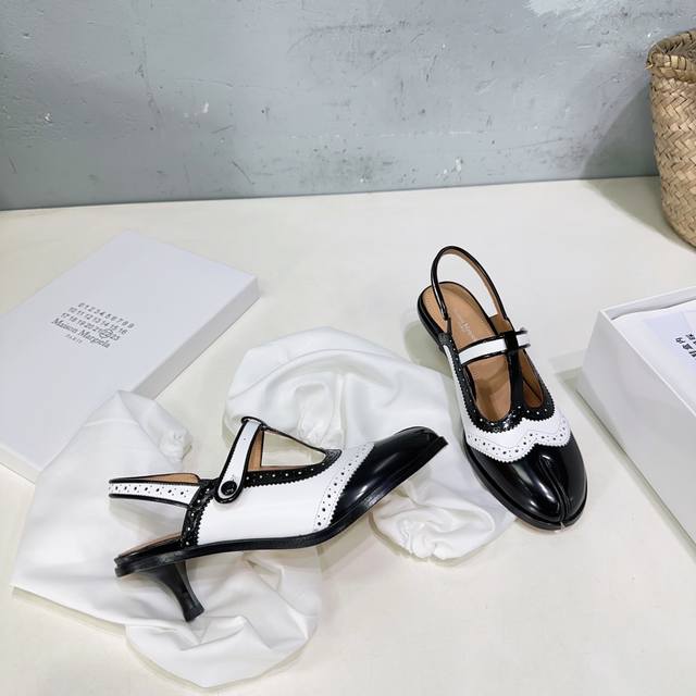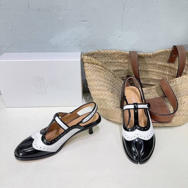 高品质出厂 !小众潮牌Maison Margiela马吉拉25春夏Mm6新款冲孔雕花布洛克后空高跟分趾凉鞋!