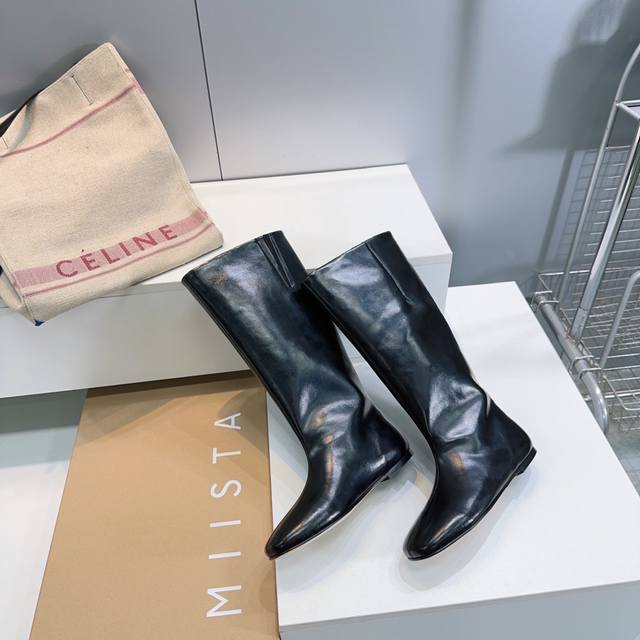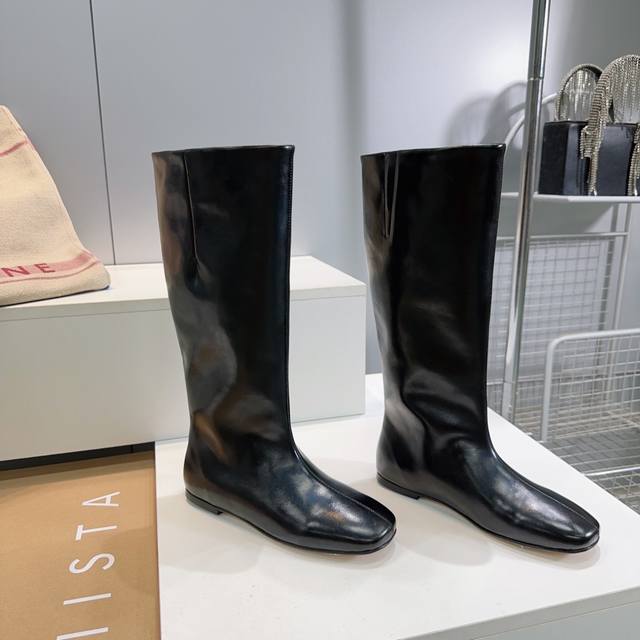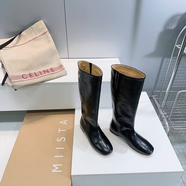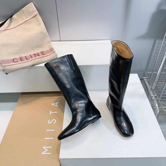 高品质出厂 !小众潮牌Miista25Ss秋冬新款直筒一脚蹬平底长靴极简风骑士靴! 这种看似简单的款式超级百搭,无论搭配什么颜色衣服都非常棒,简单款不怕多好穿又