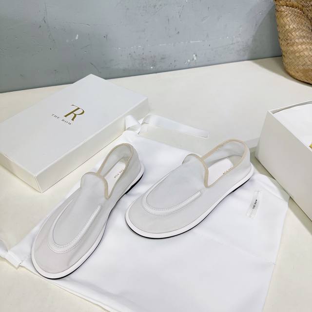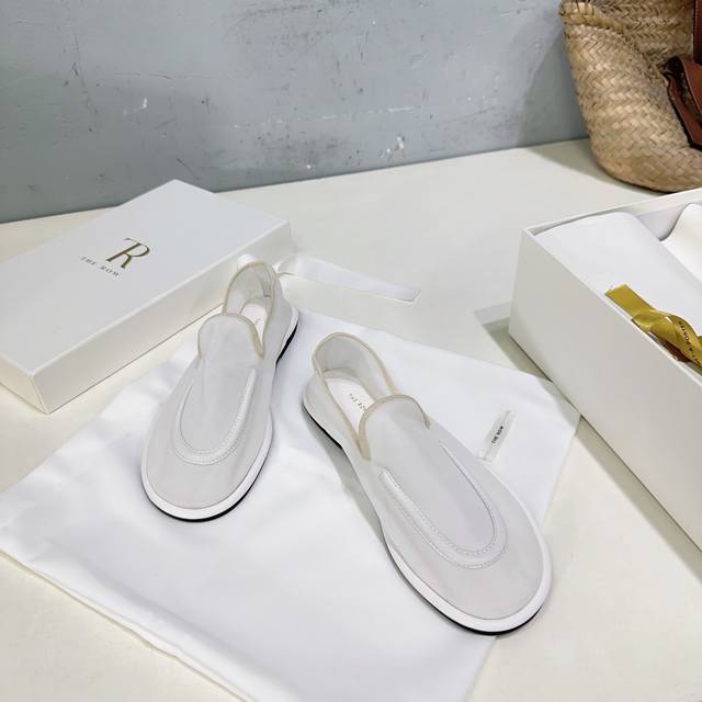 高品质出厂 !小众潮牌The Row 25春夏新品简易透气网纱圆头平底乐福鞋!夏天必备神器!