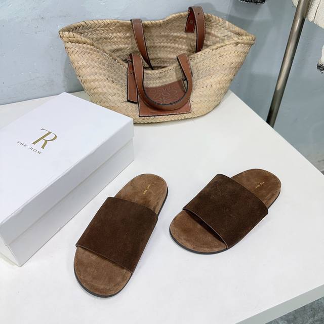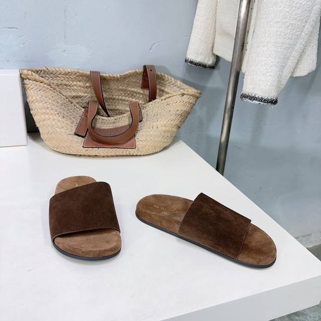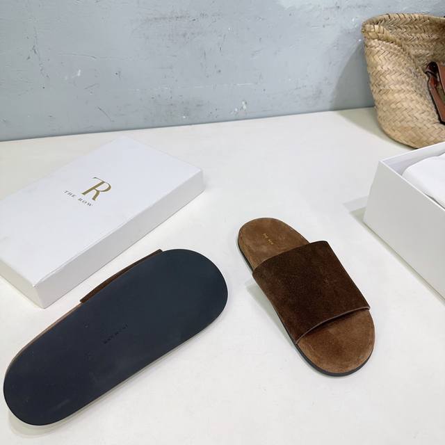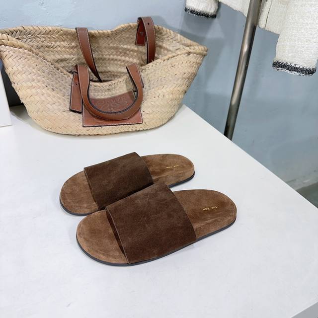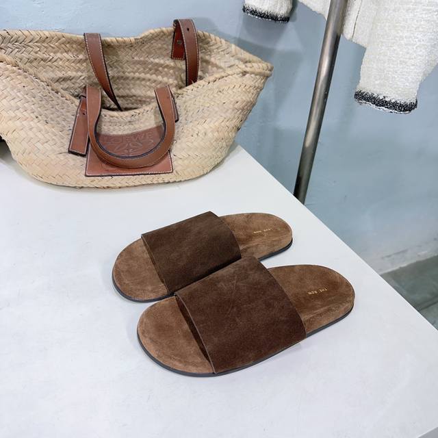 高品质出厂 !小众潮牌The Row 25春夏新款简易一片式平底沙滩拖鞋!