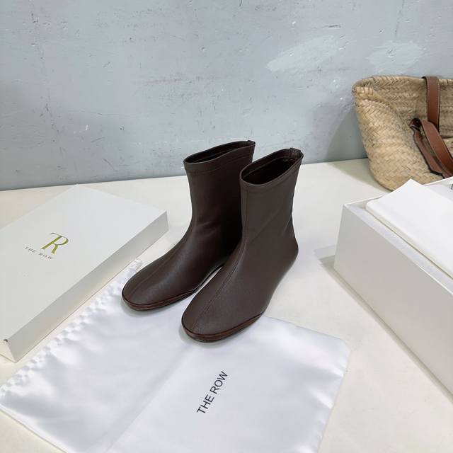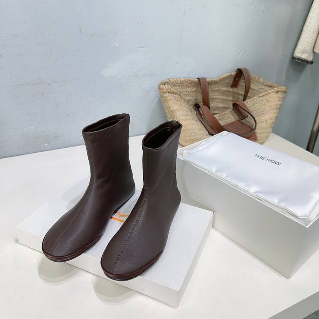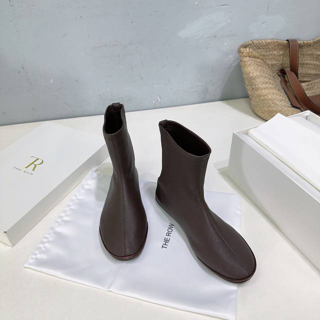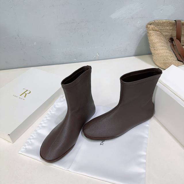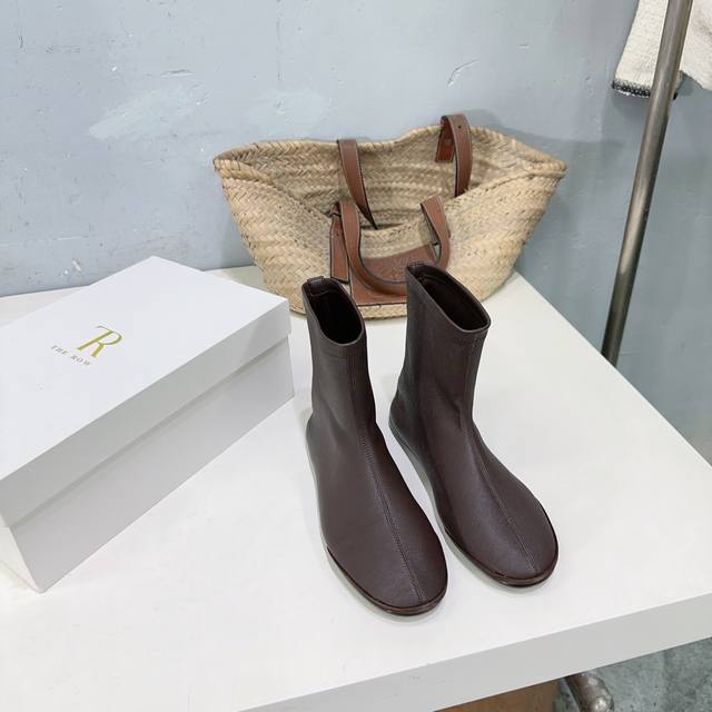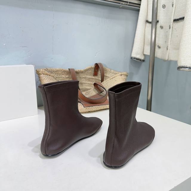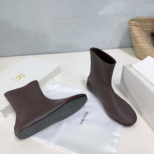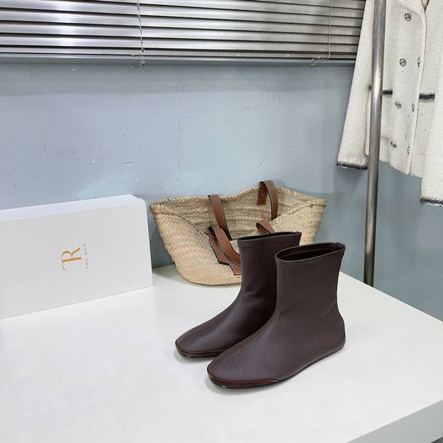 高品质出厂 !小众潮牌The Row 25秋冬新款简易弹力短靴平底忍者靴!超舒适极简风靴子!