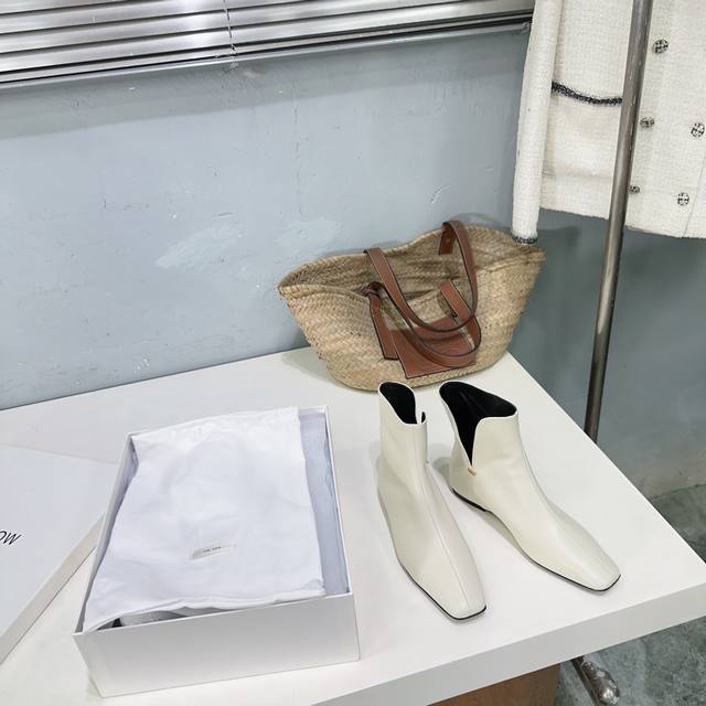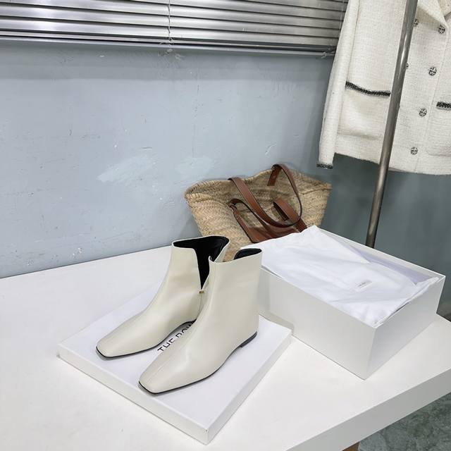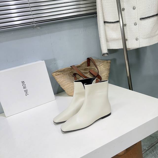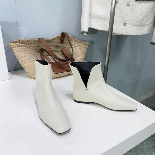 高品质出厂 !小众潮牌The Row 25Ss秋冬新款时尚经典V字口平底瘦瘦短靴来了!