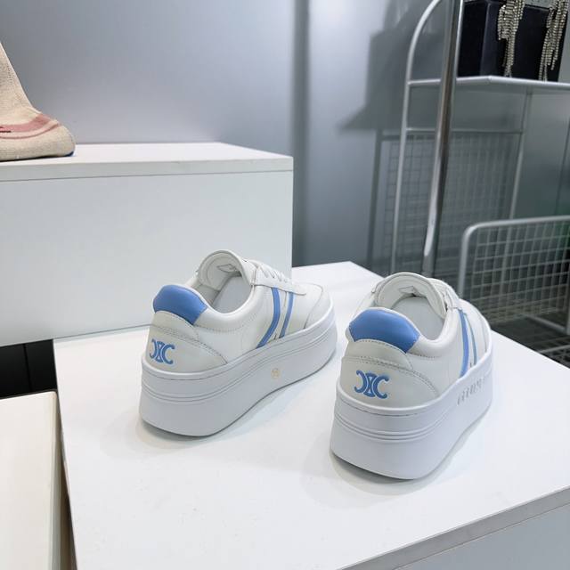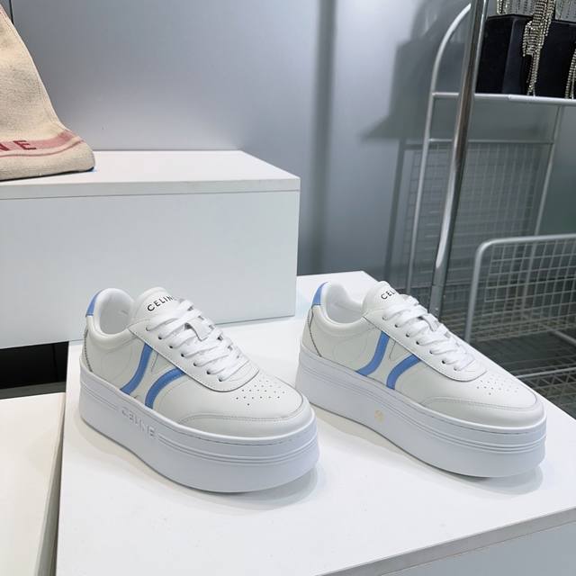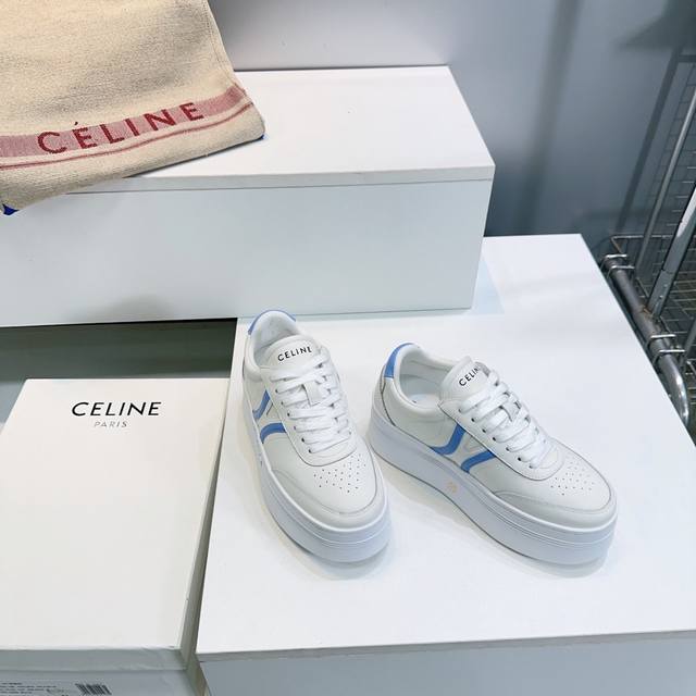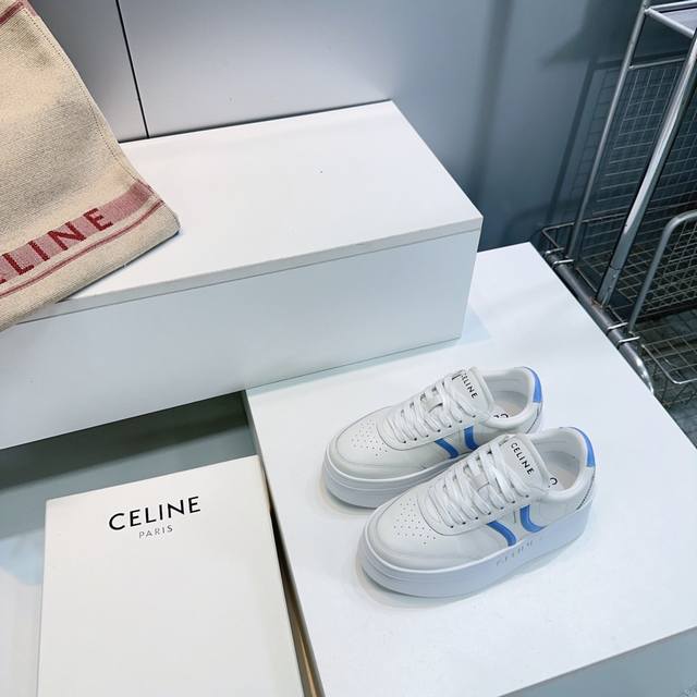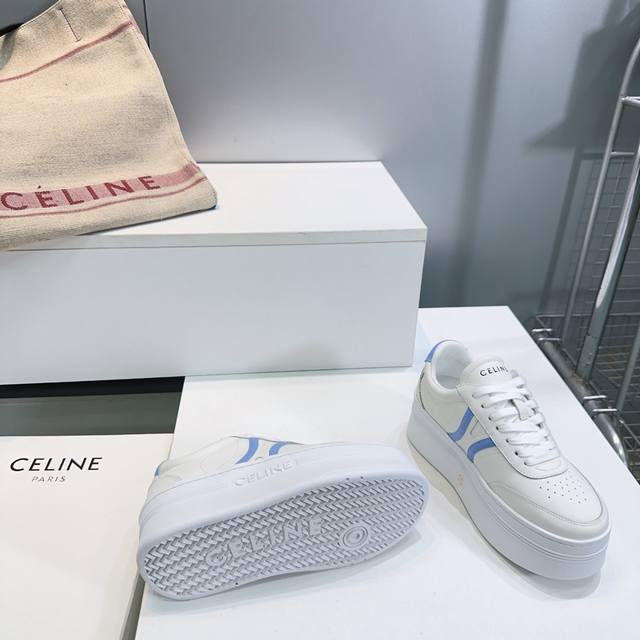 高品质出厂 !顶级品质升级版本!Celine赛琳25秋冬新品经典厚底休闲小白鞋!最火休闲鞋单品之一!刘雯 杨幂 Lisa同款,华丽又实用,本身的质感符合休闲华丽这个看似矛盾的风格,而其皮件及配件从皮包,皮鞋到领带丝巾都在奢华的基础上突出实用主义。这双休闲板鞋,充满街头感的一双鞋子,鞋柜里永远都缺一双小白鞋,而今年这款小白鞋是不二之选。与烂大街的Aj不同,Celin 小白鞋有它自己独特的设计,皮革鞋面非常好打理,独出心裁,别具一格,侧面与后跟的Logo让他简单又不失调性,完美的一双小白鞋~