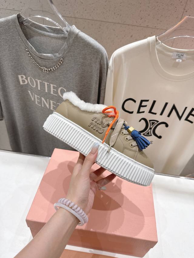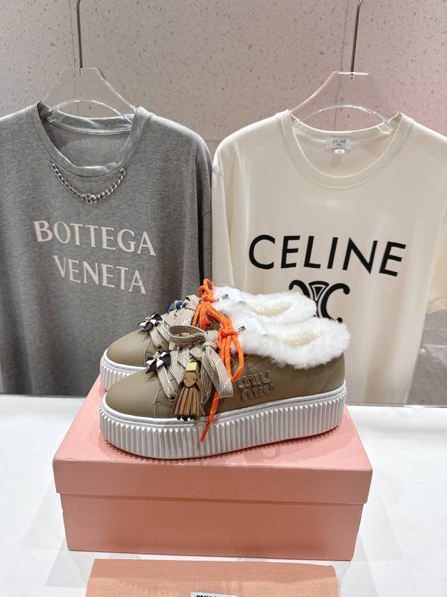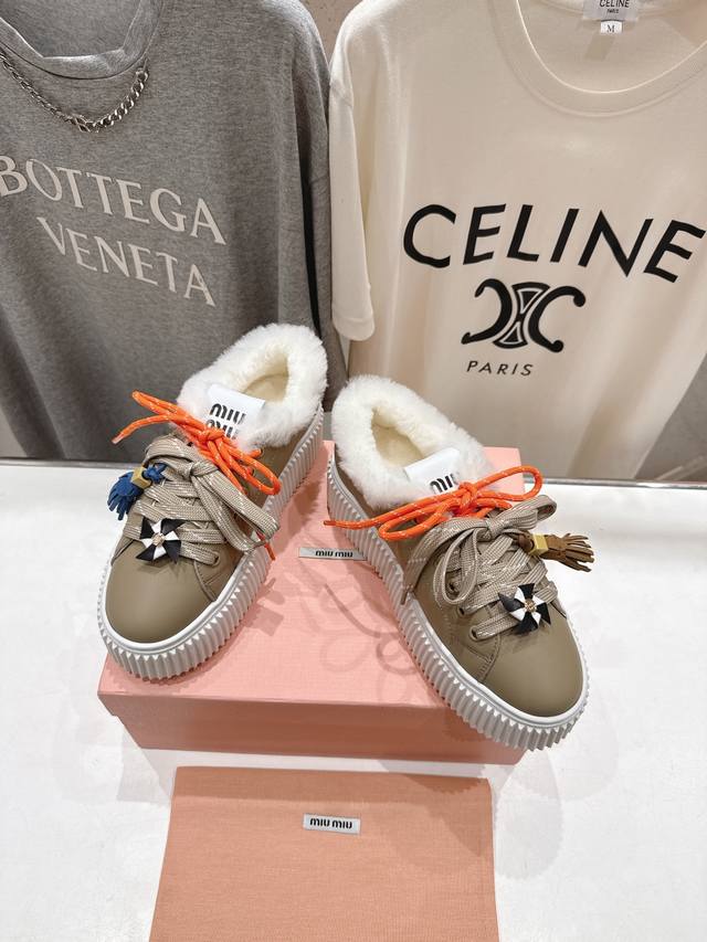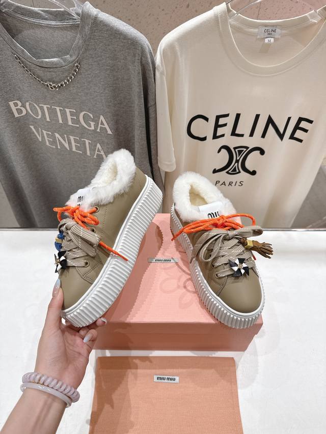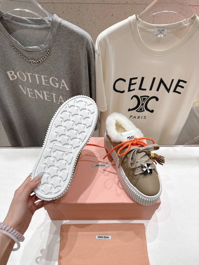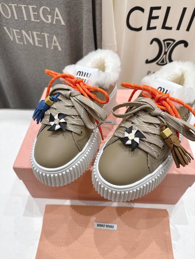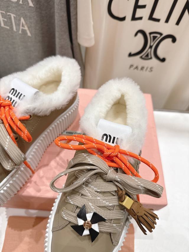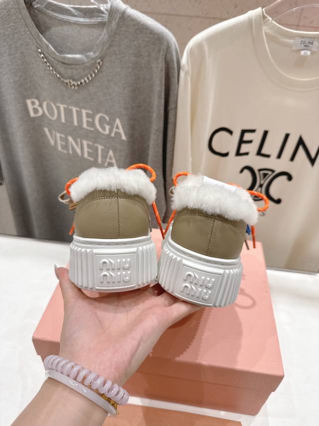 Miumiu 繆繆25Ss New Arrival F039~Miu家新款系带厚底羊毛里德训鞋休闲鞋