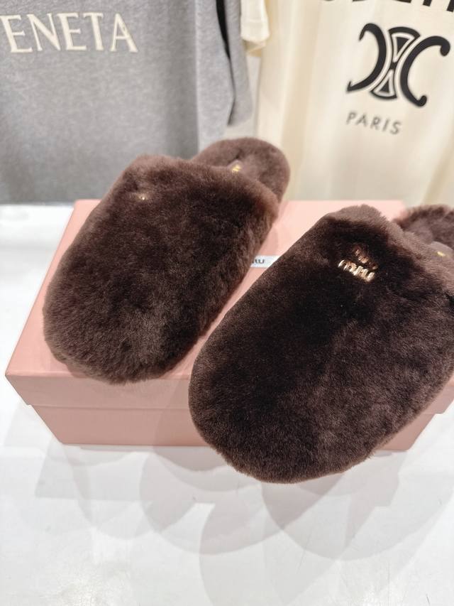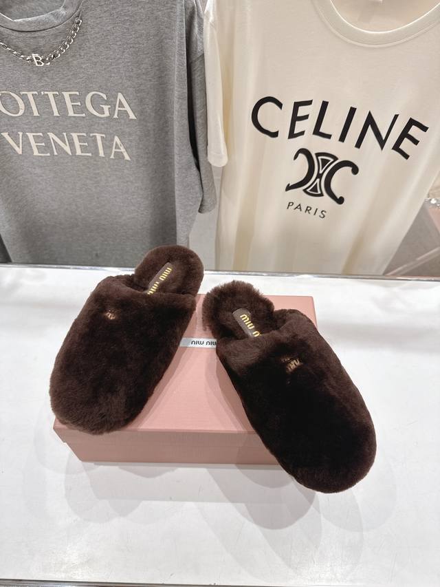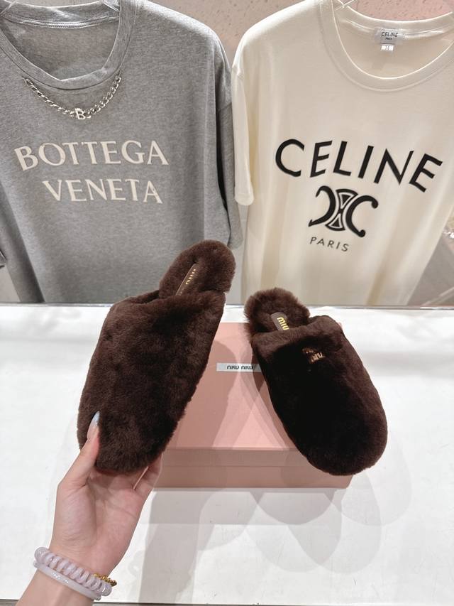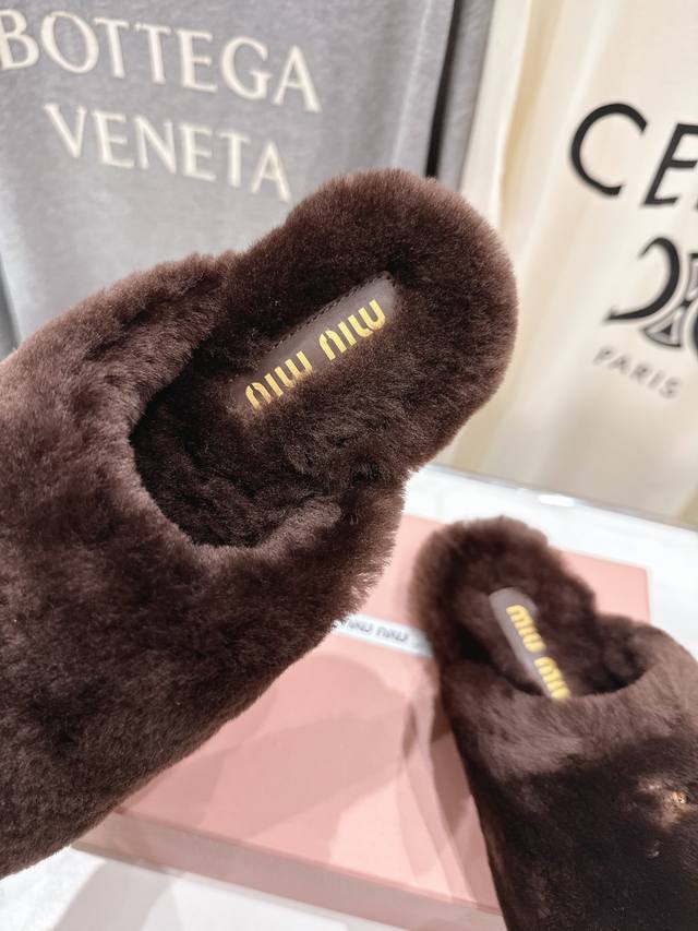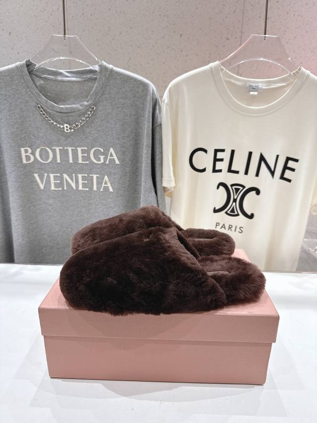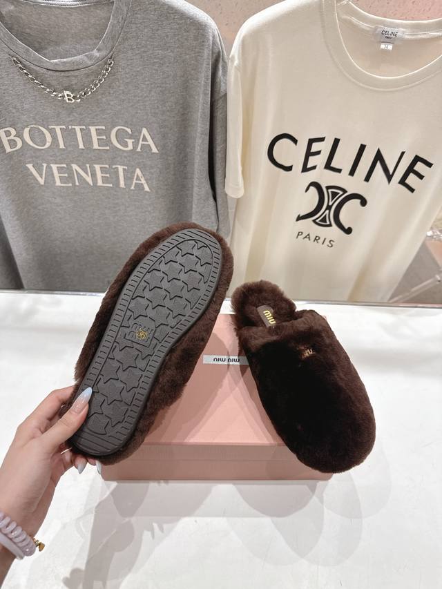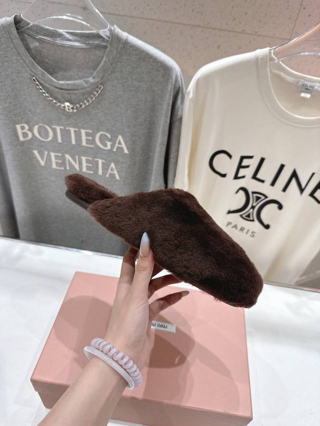 Miumiu 缪缪 2025Ss秋冬新款勃肯包头毛毛拖鞋毛毛鞋