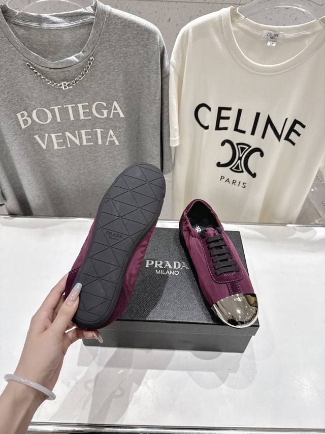 Prada*普拉达P家25Ssfw~New新款系带玛丽珍休闲鞋芭蕾舞鞋,低调奢华懒人鞋,富人的不二选择!