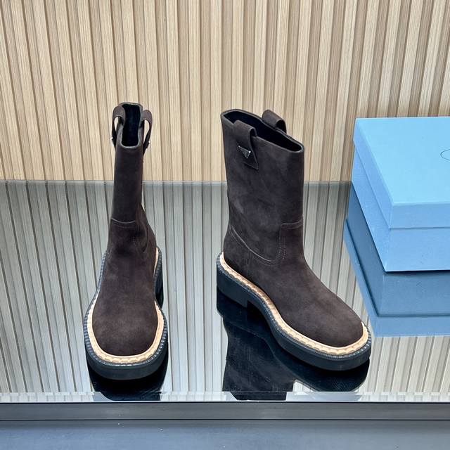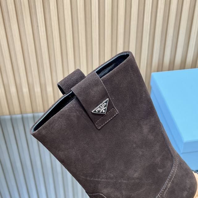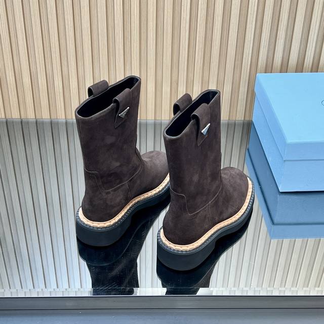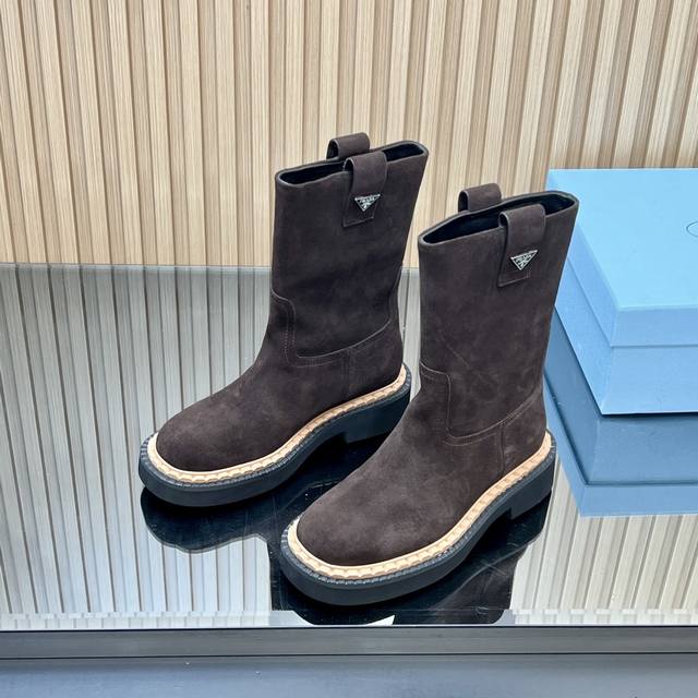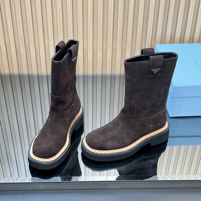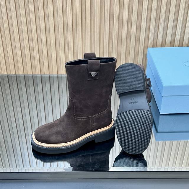 25Ss新款Prada三角标系带短靴马丁靴