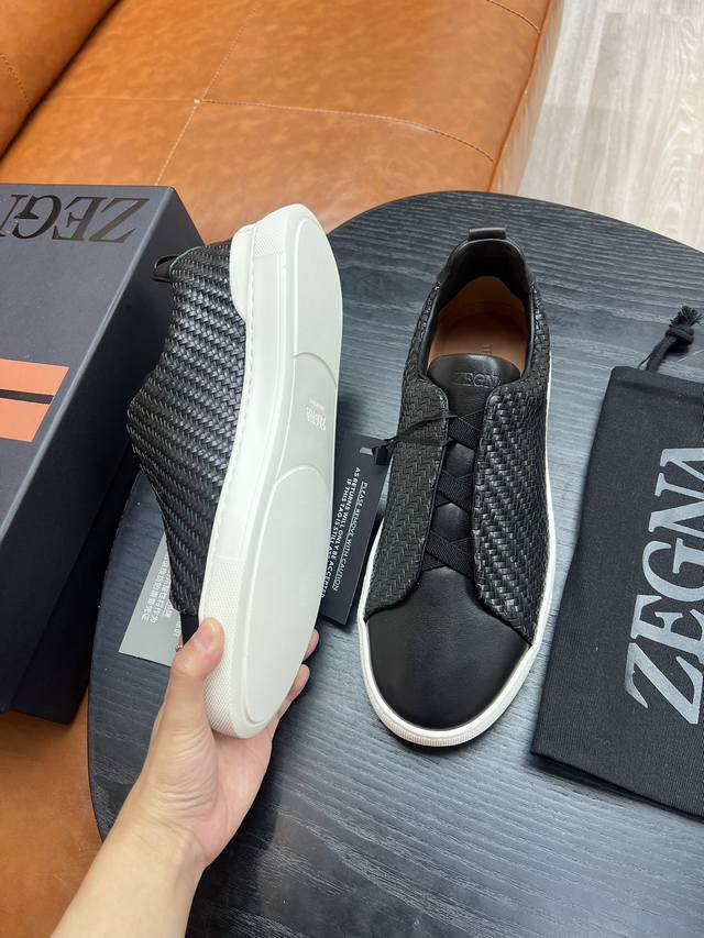 高端品质 商品商标:杰尼* 杰尼亚* 低帮休闲鞋 正码码数: 38-44 可订做45 商品材料:鞋面进口编织牛皮,羊皮内里,羊皮垫脚,原版大底