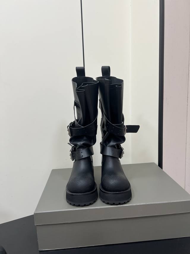 15寸做旧靴子 Balenciaga巴黎世家25秋冬新款Venom复古做旧机车靴及膝靴休闲情侣款靴子